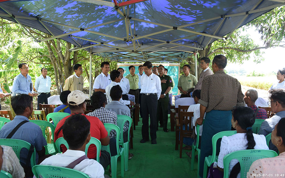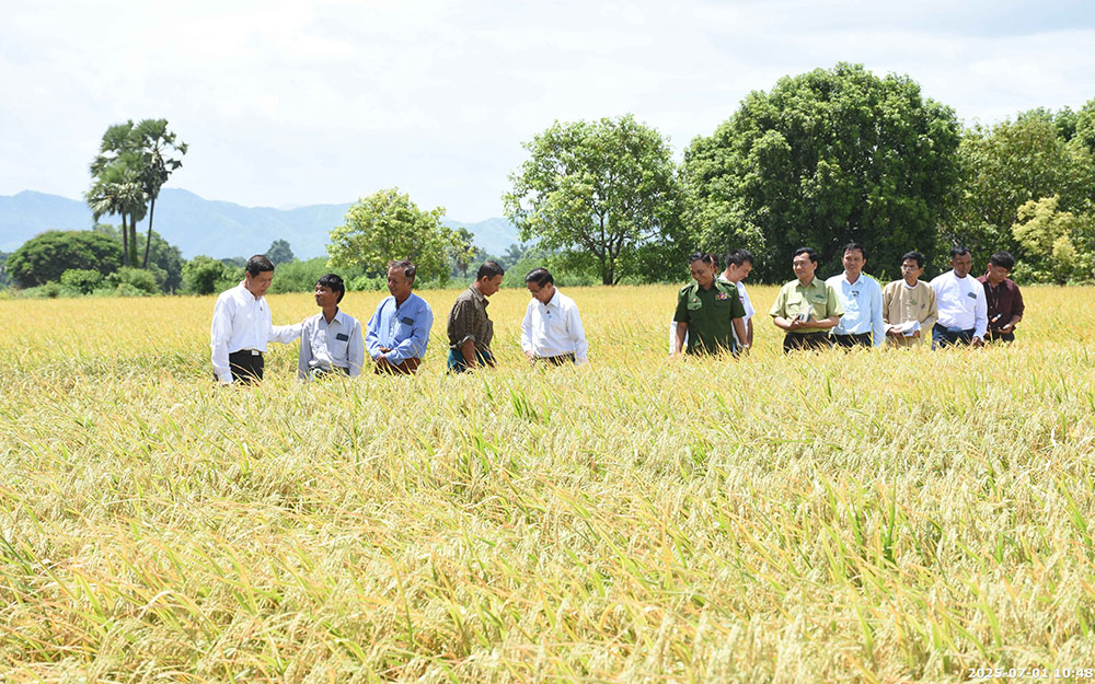 ၎င်းနောက် တိုင်းဒေသကြီးဝန်ကြီးချုပ်နှင့် အဖွဲ့သည် စဉ့်ကိုင်မြို့နယ် ဆောက်အင်းကျေးရွာရှိ တောင်သူ ဦးကျော်နိုင်ဦး၏ နွေစပါး(ဆင်းသုခ) ပန်းတိုင်အထွက်နှုန်းရရှိရေး စံပြကွက်အောင်မြင်ဖြစ်ထွန်းနေမှု ကွင်းသရုပ်ပြနေရာသို့ ရောက်ရှိပြီး မြို့နယ်စိုက်ပျိုးရေး ဦးစီးဌာနမှ ရှင်းလင်းတင်ပြမှုများနှင့် တက်ရောက်လာသည့် တောင်သူများမှ တင်ပြချက်များအပေါ် ပေါင်းစပ်ညှိနှိုင်းဆောင်ရွက်ပေးပြီး နွေစပါး (ဆင်းသုခ) အောင်မြင်ဖြစ်ထွန်းနေမှုနှင့် မိုးစပါးစိုက်ပျိုးထားမှုများကို လိုက်လံကြည့်ရှုခဲ့သည်။