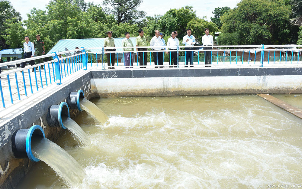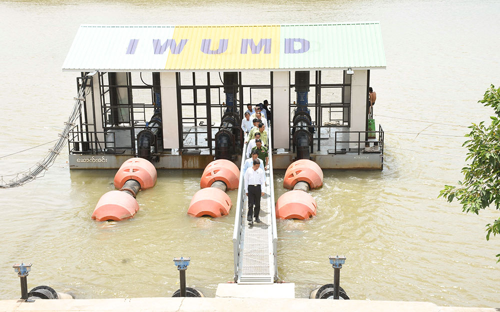 ဆက်လက်၍ စဉ့်ကိုင်မြို့နယ်၊ ဆောက်အင်းကျေးရွာအနီးရှိ ဆောက်အင်းဆိုလာစနစ် ပူးတွဲလျှပ်စစ်မြစ်ရေတင်စီမံကိန်းသို့ ရောက်ရှိပြီး ဆည်မြောင်းနှင့်ရေအသုံးချမှု စီမံခန့်ခွဲရေးဦးစီးဌာနမှ ဒုတိယညွှန်ကြားရေးမှူးက ဒုဋ္ဌဝတီမြစ်ပေါ်တွင် မြစ်ရေတင်စီမံကိန်း ၁၅ ခုဆောင်ရွက်ထားရှိမှု၊ ယခုစီမံကိန်းတွင် လျှပ်စစ်ဓာတ်အား ချွေတာသုံးစွဲနိုင်ရေးအတွက် လျှပ်စစ်နှင့် ဆိုလာစနစ်ပူးတွဲပြီး လာမည့်မိုးရာသီမှစ၍ အကျိုးပြုဧက ၁၀၀၀ အထိ စိုက်ပျိုးရေ ပေးဝေနိုင်ရန် ဆောင်ရွက်နေမှု အခြေအနေများကို ရှင်းလင်းတင်ပြရာ တိုင်းဒေသကြီး ဝန်ကြီးချုပ်က ရှင်းလင်းတင်ပြမှုများအပေါ် လိုအပ်သည်များကို ပေါင်းစပ်ဖြည့်ဆည်း ဆောင်ရွက်ပေး၍ လုပ်ငန်းဆောင်ရွက်နေမှုများကို လိုက်လံကြည့်ရှုစစ်ဆေးခဲ့ကြောင်း သိရသည်။