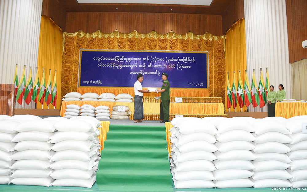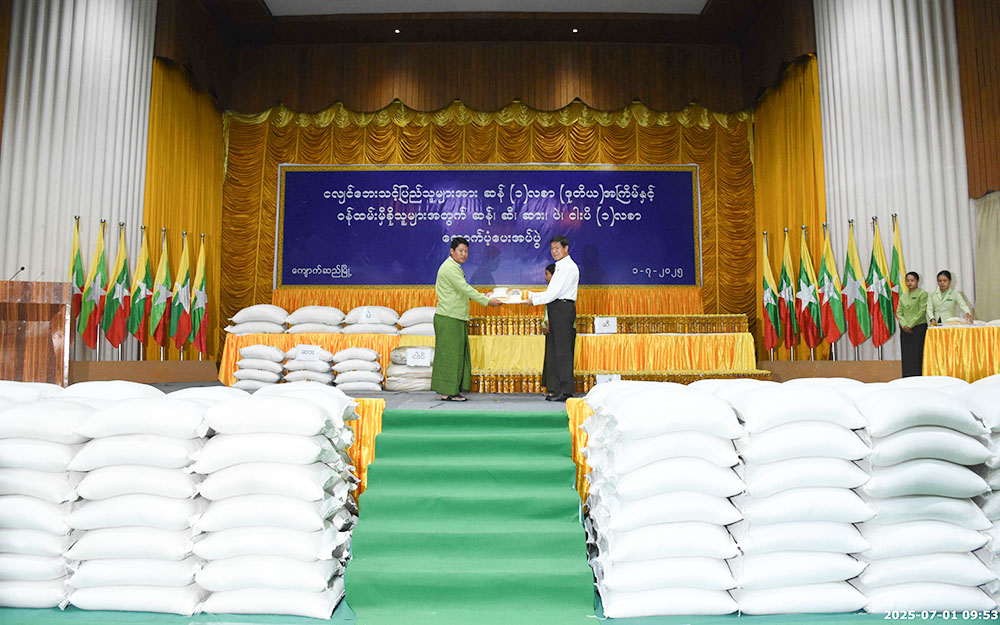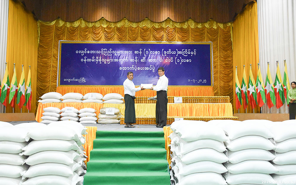 ၎င်းနောက် တိုင်းဒေသကြီးဝန်ကြီးချုပ်၊ တိုင်းဒေသကြီးအစိုးရအဖွဲ့ဝင် ဝန်ကြီးများနှင့် တာဝန်ရှိသူများက အမျိုးသားသဘာဝဘေးအန္တရာယ်ဆိုင်ရာ စီမံခန့်ခွဲမှုကော်မတီက မန္တလေးငလျင်ဘေးသင့်ဝန်ထမ်းများနှင့် ပြည်သူများအား ထောက်ပံ့သည့် ဆန်နှင့်ရိက္ခာပစ္စည်းများကို သက်ဆိုင်ရာစီမံအုပ်ချုပ်ရေးအဖွဲ့ဥက္ကဋ္ဌများနှင့် ငလျင်ဘေးသင့်ပြည်သူများထံ ပေးအပ်ခဲ့ပြီး ပြည်သူတစ်ဦးက ကျေးဇူးတင်စကား ပြောကြားခဲ့ကြောင်း ယခုထောက်ပံ့ပေးမှုမှာ ၂၀၂၅ ခုနှစ် မေလ အတွက်ဖြစ်ပြီး ငလျင်ဘေးသင့် ပြည်သူ (၁၅၁၇၇၆) ဦး အတွက် တစ်ဦးလျှင် ဆန်(၁)လစာ၊ ဝန်ထမ်း နှင့် မှီခိုသူ (၃၄၈၉၁)ဦးအတွက် တစ်ဦးလျှင် ဆန်၊ ဆီ၊ ဆား၊ ကုလားပဲ၊ ငါးပိ (၁)လစာ စုစုပေါင်း (၁၈၆၆၆၇)ဦးအတွက် ဆန်အိတ် (၅၈၃၃၄) အိတ်၊ ဆီ (၂၆၁၆၈) ပိသာ၊ ဆား (၁၀၄၆၇)ပိသာ၊ ကုလားပဲ (၅၂၃၃၆) ပိသာ နှင့် ငါးပိ (၅၂၃၄) ပိသာ တို့ကို ထောက်ပံ့ပေးအပ်ခဲ့ကြောင်း သိရသည်။