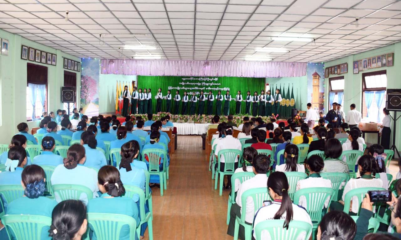 ဆက်လက်၍ အမှတ် (၂) အခြေခံပညာအထက်တန်းကျောင်းရှိ ကျောင်းသား/ ကျောင်းသူလေးများက သနပ်ခါးသီချင်းဖြင့် ဖျော်ဖြေတင်ဆက်ကာ တာဝန်ရှိသူများက ဂုဏ်ပြုဆုငွေများ ပေးအပ်ချီးမြှင့်ခဲ့ကြကြောင်း သိရသည်။