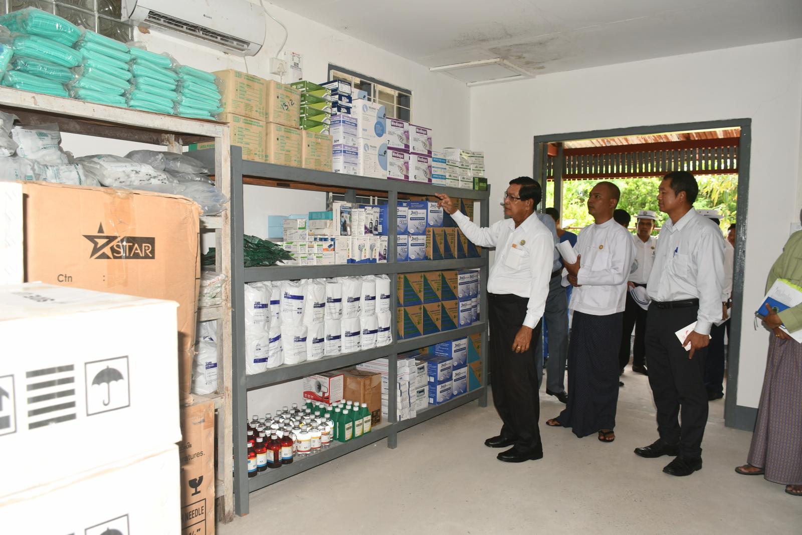 ထို့နောက် တိုင်းဒေသကြီးဝန်ကြီးချုပ်နှင့်အဖွဲ့သည် မြို့နယ်ပြည်သူဆေးရုံတွင် ဆေးရုံတက်ရောက်ကုသမှုခံယူနေသော လူနာများအား ချီးမြှင့်ငွေပေးအပ်ပြီး ဆေးရုံအတွင်း လှည့်လည်ကြည့်ရှုစစ်ဆေးကာ ချီးမြှင့်ငွေနှင့် ဆေးရုံအတွက်လိုအပ်သော ဆေးပစ္စည်းများအား တာဝန်ရှိသူများထံ ပေးအပ်သည်။