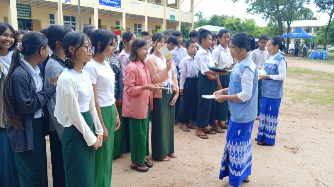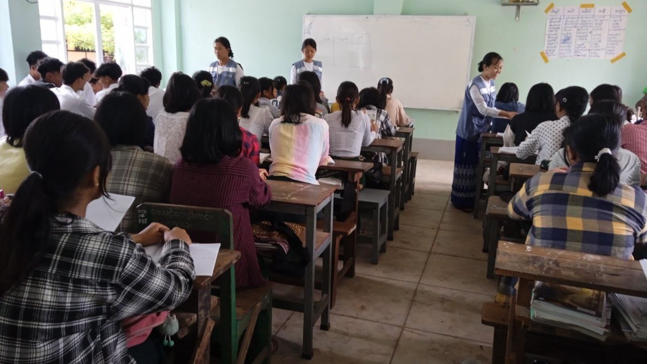 ရှေးဦးစွာလူမှုဝန်ထမ်းကယ်ဆယ်ရေးနှင့်ပြန်လည် နေရာချထားရေးဝန်ကြီးဌာနမှ ခရိုင်ဦးစီးမှူး ဒေါ်မေဖြူစိုးက ငလျင်ဘေး၊ မီးဘေး၊ မုန်တိုင်းအန္တရာယ်၊ ရေဘေးပညာပေးအကြောင်းအရာများကို ကျောင်းသားလူငယ်များ ထိခိုက်နစ်နာပျက်စီးဆုံးရှုံးမှုမရှိစေရန်နှင့် သဘာဝဘေးဖြစ်ပွားပြီးပါ ကလည်းဆက်သွယ်ရမည့် ဖုန်းနံပါတ်များဆောင်ရှန်၊ ရှောင်ရန်များအကြောင်း အသိပညာပေး ဟောပြောခဲ့သည်။ ထို့နောက် ဝန်ကြီးဌာနမှ ထုတ်ဝေသည့် လက်ကမ်းစာစောင် စောင်ရေ(၅၀၀) အား ဖြန့်ဝေခဲ့ကြောင်း သိရသည်။