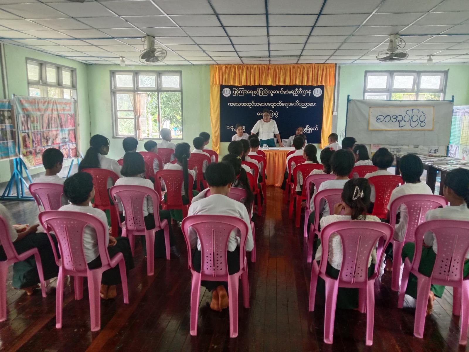 ဦးစွာ ပြန်ကြားရေးနှင့်ပြည်သူ့ဆက်ဆံရေးဦးစီးဌာန ဦးစီးအရာရှိ ဒေါ်တင်တင်ထွေးက ကလေးအလုပ်သမားဆိုင်ရာတားမြစ်ချက်များ၊ အပြည်ပြည်ဆိုင်ရာပြဌာန်းချက်များ၊ အလုပ်ရှင်များအတွက် ကလေးသူငယ်အခွင့်အရေးဆိုင်ရာများ၊ ကလေးအလုပ်သမားအဓိပ္ပါယ်၊ ကလေးအလုပ်သမား၏ အသက်အရွယ်၊ ကလေးအလုပ်သမားပပျောက်ရေး ရည်မှန်းချက်(၃)ရက်တို့အား ပြောကြားခဲ့သည်။ ထို့နောက် ဒေါ်အေးအေးခိုင် (အလယ်တန်းပြဆရာမ)က စာပေဖတ်ရှုခြင်းဖြင့် ရရှိမည့် အကျိုးကျေးဇူးများအား ဟောပြောခဲ့ကြောင်း သိရသည်။