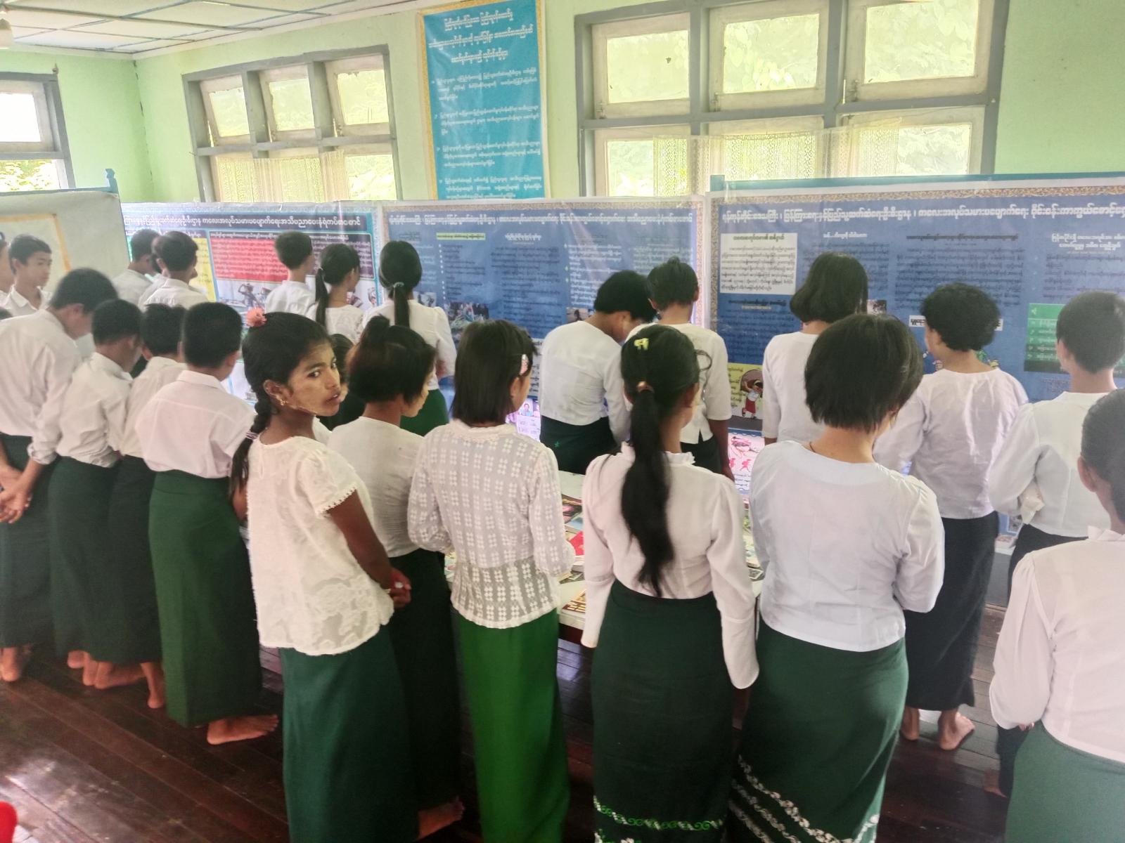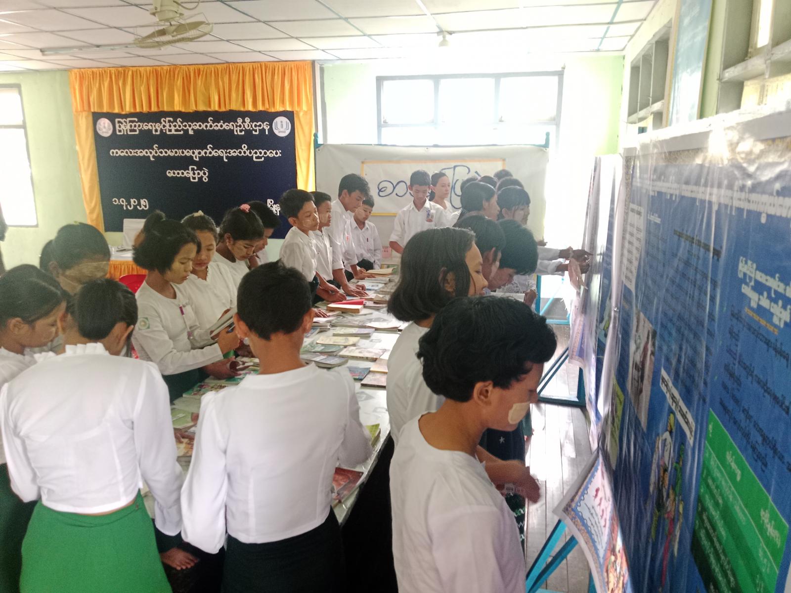 ဟောပြောပွဲအပြီးတွင် မြို့နယ်ရုံးမှပြသထားသော သုတရသစာအုပ်များနှင့် နံရံကပ်စာစောင်များအား ကျောင်းသား/သူများနှင့် ဆရာ ဆရာမများက စိတ်ဝင်စားစွာ လေ့လာကြည့်ရှုခဲ့ကြကြောင်း သိရသည်။