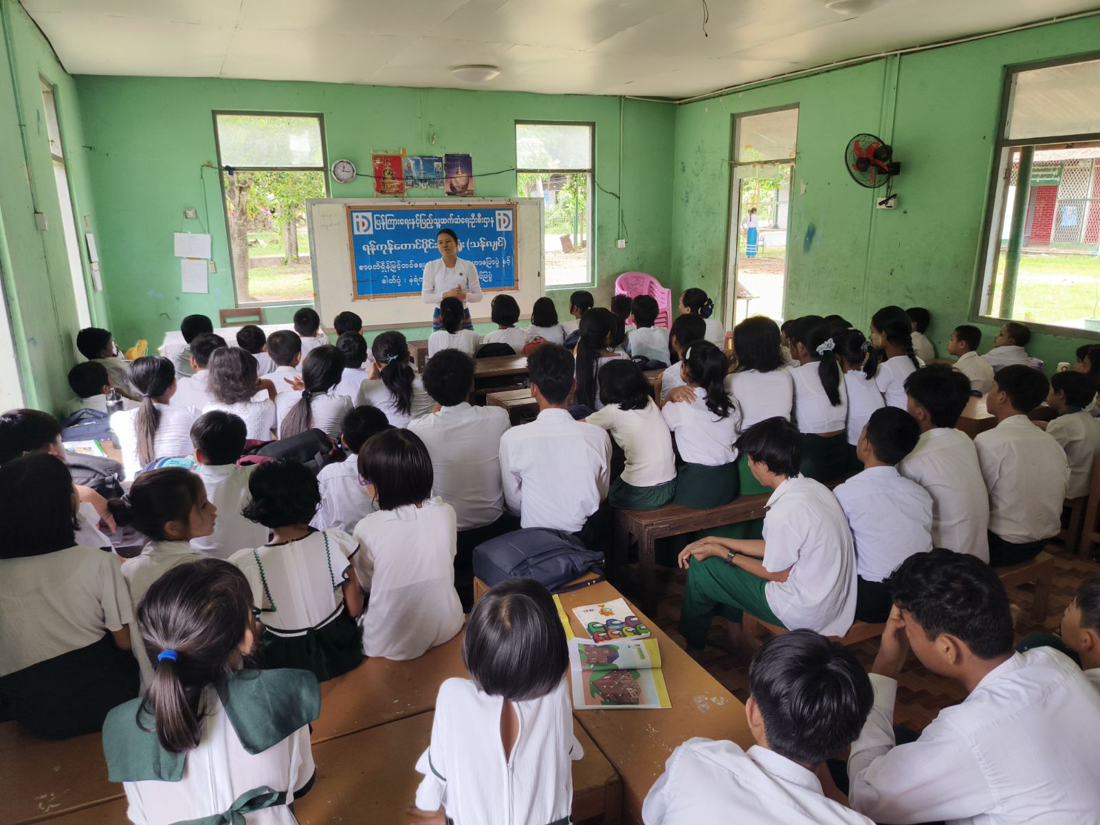 ထိုသို့ ကွင်းဆင်းဆောင်ရွက်ရာတွင် ပြန်ကြားရေးနှင့်ပြည်သူ့ဆက်ဆံရေးဦးစီးဌာန ဒုတိယဦးစီးမှူး ဒေါ်စမ်းစမ်းစိမ့်က ကျောင်းသား/ကျောင်းသူများအနေဖြင့် ကျောင်းစာအပြင် ပြင်ပစာအုပ်စာစောင်များကို ဗဟုသုတရရှိရေးအတွက် ဖတ်ရှုလေ့လာသော အလေ့အကျင့်ကောင်းများရှိစေရန်၊ စာပေဖတ်ရှုခြင်းဖြင့် ရရှိနိုင်သော အသိပညာဗဟုသုတများ၊ ရည်ရွယ်ချက်/ ရည်မှန်းချက်ထားရှိရန်၊ ပြည်သူ့စာကြည့်တိုက်တွင် စာအုပ်/စာပေများ (အခမဲ့) လာရောက်ငှားရမ်းဖတ်ရှုခြင်းဖြင့် စာဖတ်ရှိန်မြင့်မားလာစေရန် စသည့်အကြောင်းအရာများကို အကျယ်တဝင့်ဟောပြောခဲ့သည်။