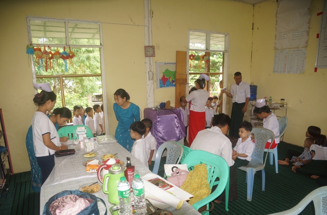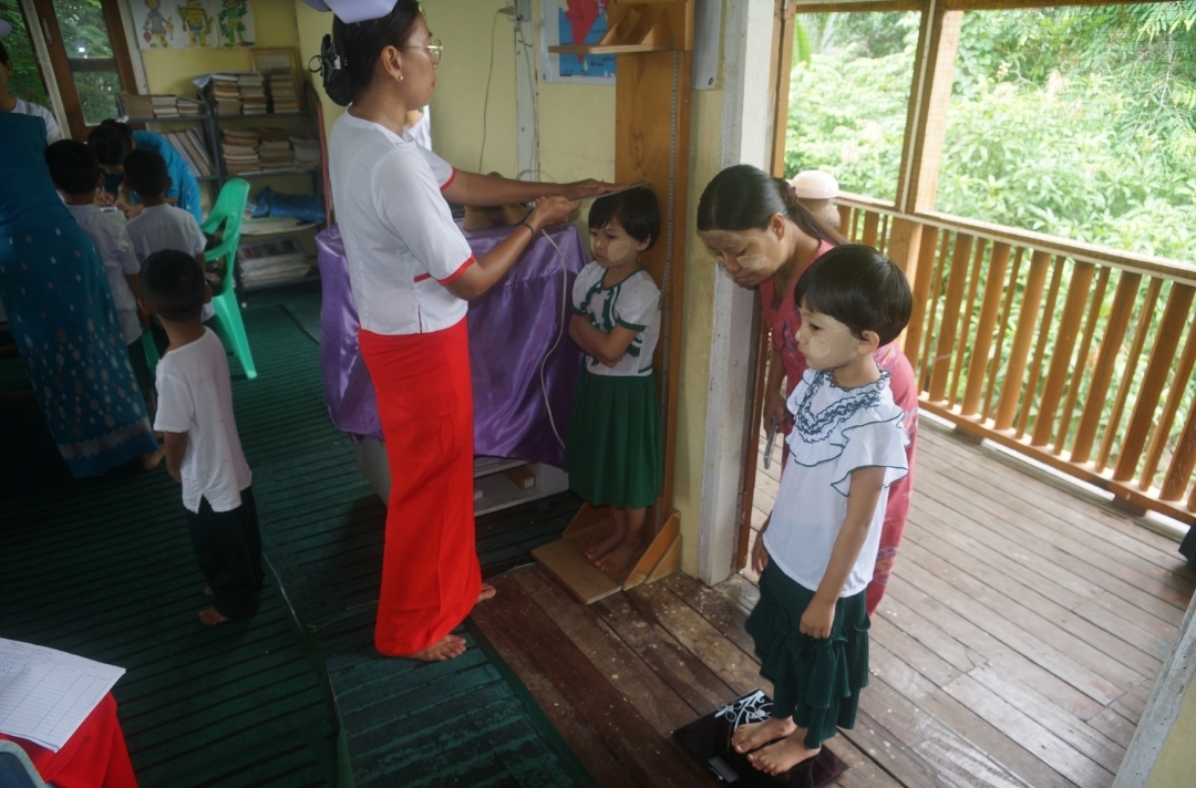 ထို့နောက် ပြည်သူ့ကျန်းမာရေးဦးစီးဌာနမှ ကျန်းမာရေးမှူး ဦးဝေလင်းအောင်နှင့် ကျန်းမာရေးဝန်ထမ်းများက ကျောင်းသားကျောင်းသူများအား အရပ်တိုင်းတာခြင်း၊ ကိုယ်အလေးချိန်တိုင်းတာခြင်း၊ အမြင်အာရုံကောင်းမွန်မှုရှိ/ မရှိ ၊ သွားနှင့် ခံတွင်းကျန်းမာရေးစစ်ဆေးပေးခြင်းများ ဆောင်ရွက်ခဲ့ကြပြီး လိုအပ်သောဆေးဝါးများ အခမဲ့ပေးအပ်ခဲ့ကြောင်း သိရသည်။
