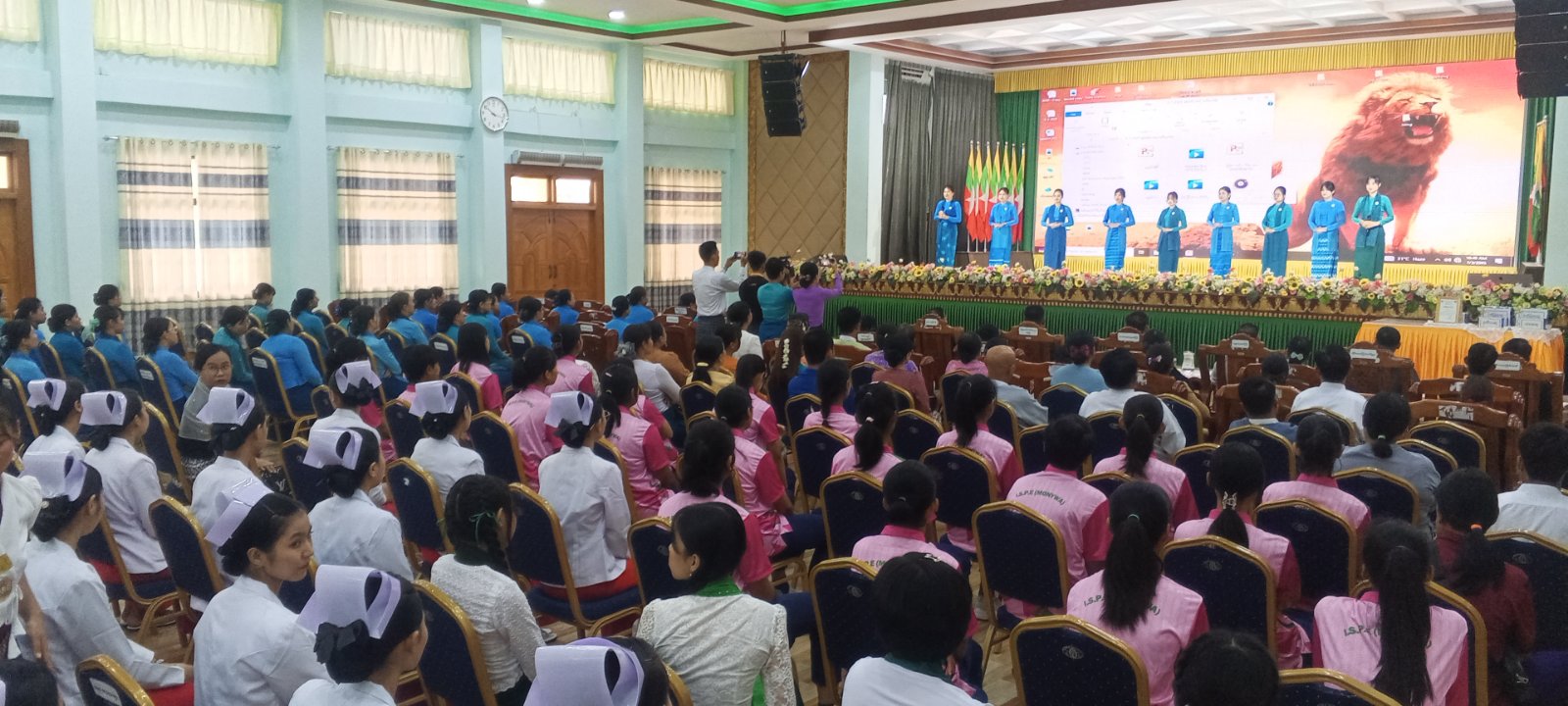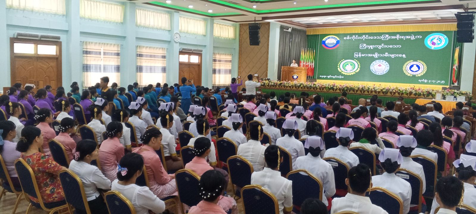 စစ်ကိုင်းတိုင်းဒေသကြီးအစိုးရအဖွဲ့က ကြီးမှူးကျင်းပသော မြန်မာအမျိုးသမီးများနေ့ အထိမ်းအမှတ် ဟောပြောပွဲ၊ ဆုချီးမြှင့်ပွဲနှင့် တေးသီချင်းသီဆိုဖျော်ဖြေပွဲများ အခမ်းအနားကို ယနေ့နံနက် ၁၀ နာရီအချိန်က စစ်ကိုင်းတိုင်းဒေသကြီးအစိုးရအဖွဲ့ရုံး ချင်းတွင်းခန်းမ၌ ကျင်းပပြုလုပ်ရာ အခမ်းအနားသို့ စစ်ကိုင်းတိုင်းဒေသကြီး တရားလွှတ်တော်၊ တရားသူကြီးချုပ်နှင့် ဇနီး၊ စစ်ကိုင်းတိုင်းဒေသကြီးအစိုးရအဖွဲ့၊ လုံခြုံရေးနှင့် နယ်စပ်ရေးရာဝန်ကြီး ဗိုလ်မှူးကြီးဝင်းတင်စိုးနှင့် ဇနီး၊ အစိုးရအဖွဲ့ဝင် ဝန်ကြီးများ၊ တိုင်းဒေသကြီး၊ ခရိုင်၊ မြို့နယ်အဆင့် ဌာနဆိုင်ရာများမှ ဖိတ်ကြားထားသူများ၊ တိုင်းဒေသကြီး၊ ခရိုင် ၊ မြို့နယ် အမျိုးသမီးရေးရာအဖွဲ့ဝင်များ၊ မိခင်နှင့်ကလေး စောင့်ရှောက်ရေး ကြီးကြပ်မှု အဖွဲ့ဝင်များနှင့် ဆုရကျောင်းသူလေးများ၊ ဖိတ်ကြားထားသူများ တက်ရောက်ခဲ့ကြသည်။