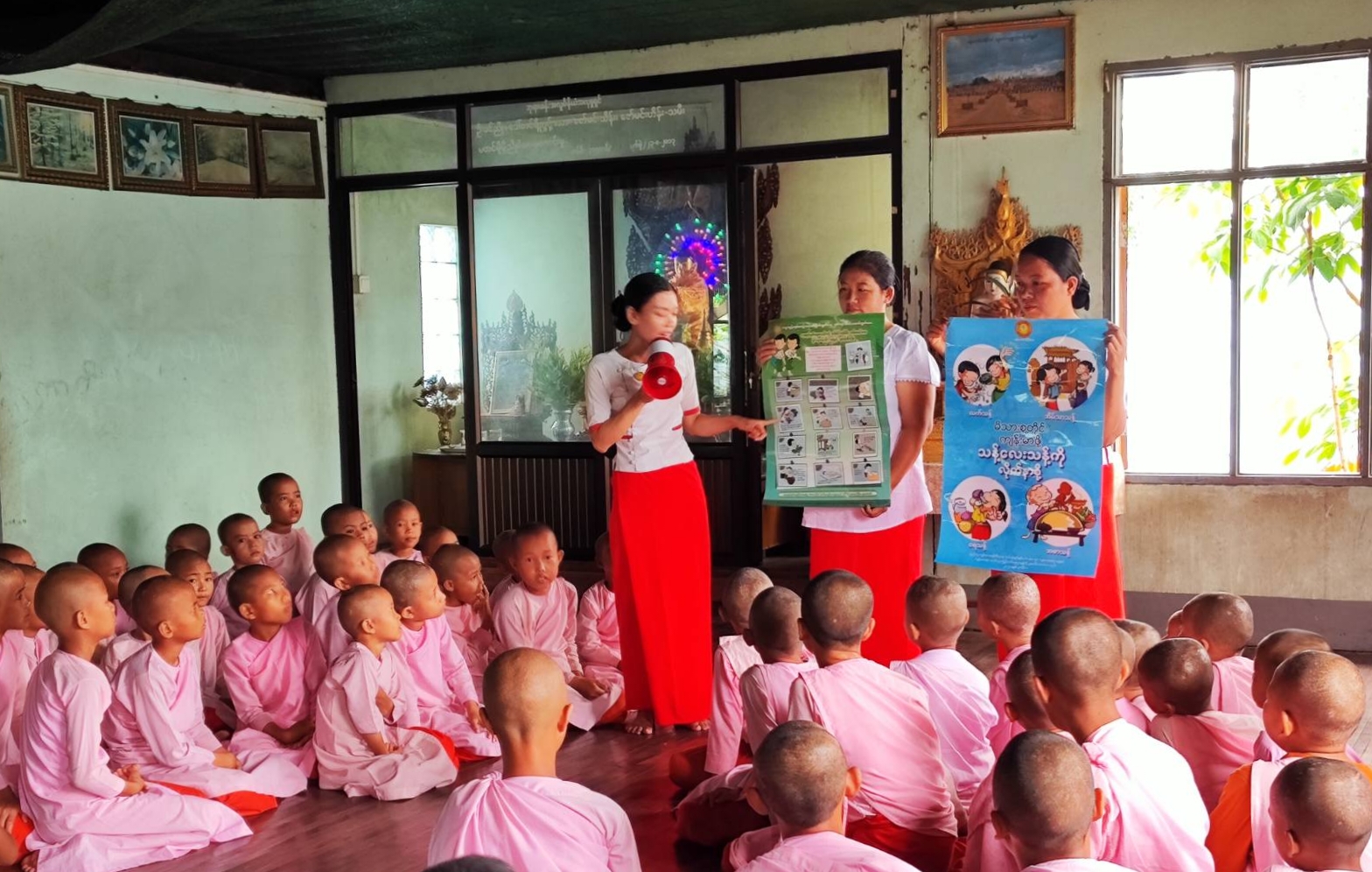 ရန်ကုန်တိုင်းဒေသကြီး၊ မင်္ဂလာဒုံမြို့နယ်တွင် ကျောင်းကျန်းမာရေး အသိပညာပေးဟောပြောပွဲနှင့် သွေးလွန်တုပ်ကွေးရောဂါ ကာကွယ်နှိမ်နင်းရေးလုပ်ငန်းများ ကွင်းဆင်းဆောင်ရွက်ခြင်းကို ပညာသိင်္ဂီဘုန်းတော်ကြီးပညာသင်ကျောင်းနှင့် ဇလွန်ဘုန်းတော်ကြီးပညာသင်ကျောင်းများ၌ ဇူလိုင် ၁ ရက်နေ့ မွန်လွဲပိုင်းက ကွင်းဆင်းဆောင်ရွက်ကြသည်။