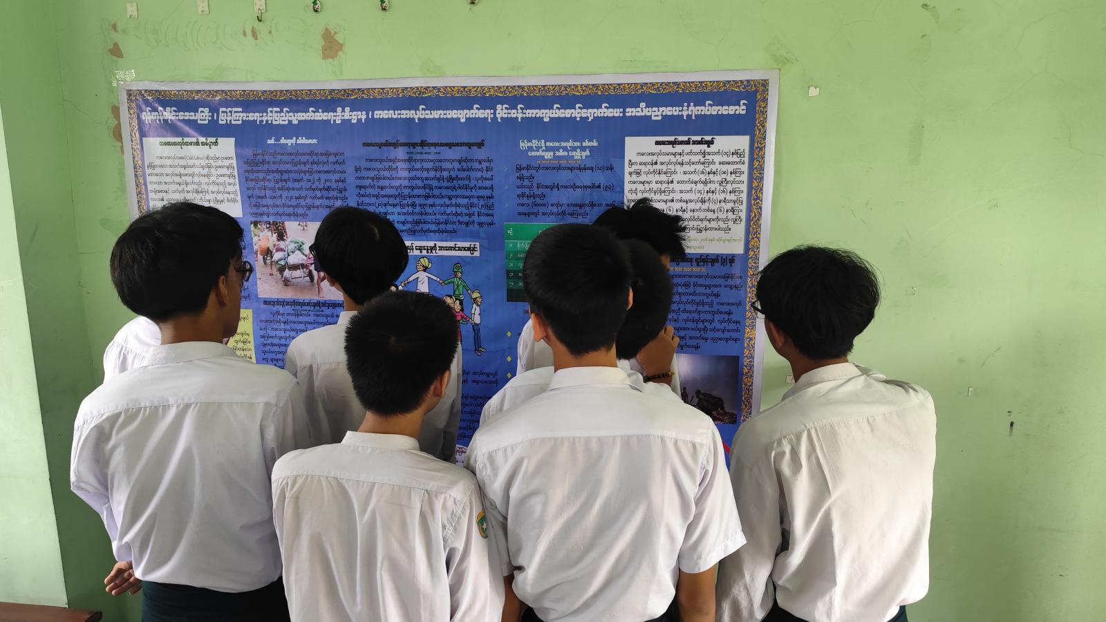 ထို့နောက် ပြန်ကြားရေးနှင့်ပြည်သူ့ဆက်ဆံရေးဦးစီးဌာနမှ ဝန်ထမ်းများက ကျောင်းသား၊ ကျောင်းသူများအား ကလေးအလုပ်သမားပပျောက်ရေး အသိပညာပေးလက်ကမ်းစာစောင်များ ဖြန့်ဝေပေးခဲ့ကြပြီး ကျောင်းသား၊ ကျောင်းသူများက ခင်းကျင်းပြသထားသော ကလေးအလုပ်သမားပပျောက်ရေး အသိပညာပေးနံရံကပ် စာစောင်များနှင့် စာအုပ်၊ စာစောင်များကို စိတ်ပါဝင်စားစွာကြည့်ရှုခဲ့ကြောင်း သိရသည်။