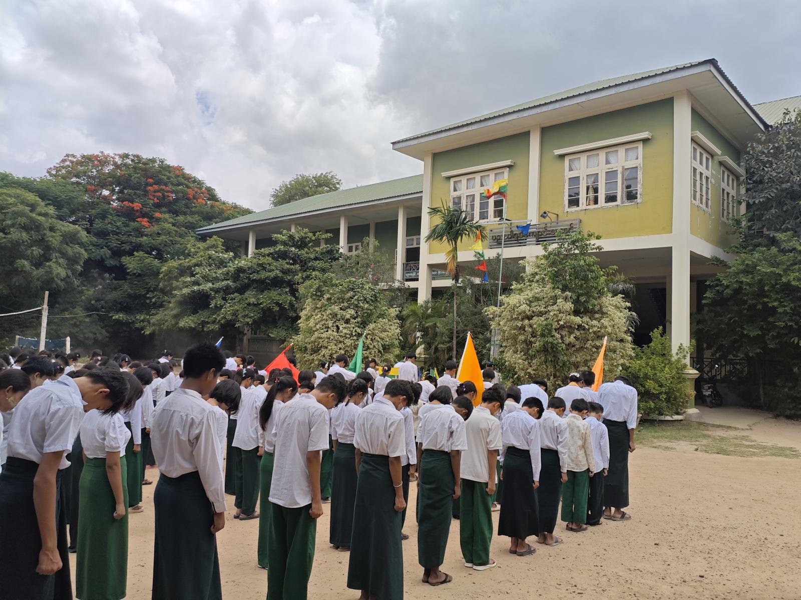 ထို့နောက် ကျောင်းကောင်စီကတိသစ္စာခံယူခြင်းအခမ်းအနားသို့ တက်ရောက်ကြသည့် ဆရာ၊ ဆရာများ၊ ကျောင်းသား၊ ကျောင်းသူများက နိုင်ငံတော်သီချင်းအား စုပေါင်းပြီး သံပြိုင်သီဆို၍ အခမ်းအနားကို အောင်မြင်စွာ ရုပ်သိမ်းခဲ့ကြောင်းသိရသည် ။