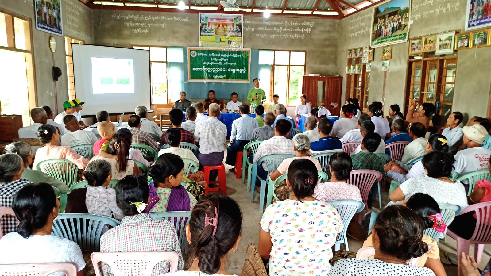 ထို့နောက်မြို့နယ်စိုက်ပျိုးရေးဦးစီးဌာန၊ လက်ထောက်ဦးစီးမှူး ဦးရဲလင်းထွန်းက မိုးစပါး မျိုးစေ့ထုတ်စိုက်ပျိုးခြင်း၊ ပျိုးထောင်နည်း ဘက်စုံသီးနှံကာကွယ်ရေးစနစ်နှင့် နှိမ်နင်းနည်းများ၊ ဖောငမြောင်တောင်ပိုး၏ဘဝစက်ဝန်းနှင့်နှိမ်နင်းနည်းတို့ကိုရှင်းလင်းဆွေးနွေးပြီး စိုက်ပျိုးရေး အသိပညာပေးလက်ကမ်းစာစောင်များ ဖြန့်ဝေပေးခဲ့သည်။