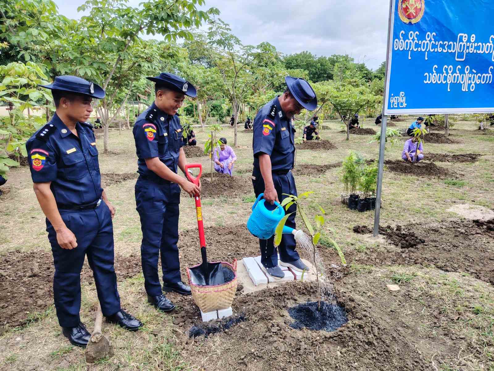 အခမ်းအနားတွင် စစ်ကိုင်းတိုင်းဒေသကြီးမီးသတ်ဦးစီးဌာန ညွှန်ကြားရေးမှူး ဦးသန်းထွဋ်ဦးနှင့်ဇနီးတို့က စိုက်ပျိုးမည့်ပျိုးပင်များအား တာဝန်ရှိသူများထံ အသီးသီးပေးအပ်ခဲ့ပြီးနောက် သန္ဓေတပ်ဖွဲ့ဝင် ၅၀ ဦးမိသားစုစည်းရုံးရေးနှင့်စည်းကမ်းထိန်းသိမ်းရေးအဖွဲ့ဝင် ၁၄ ဦးတို့က စိန်တစ်လုံးသရက် ၁ဝဝ ပင်နှင့် မန်ကျဉ်းပင် ၇၅ ပင် စုစုပေါင်း (၁၇၅)ပင်အား သတ်မှတ်နေရာများတွင် စုပေါင်းစိုက်ပျိုးခဲ့ကြကြောင်း သိရသည်။