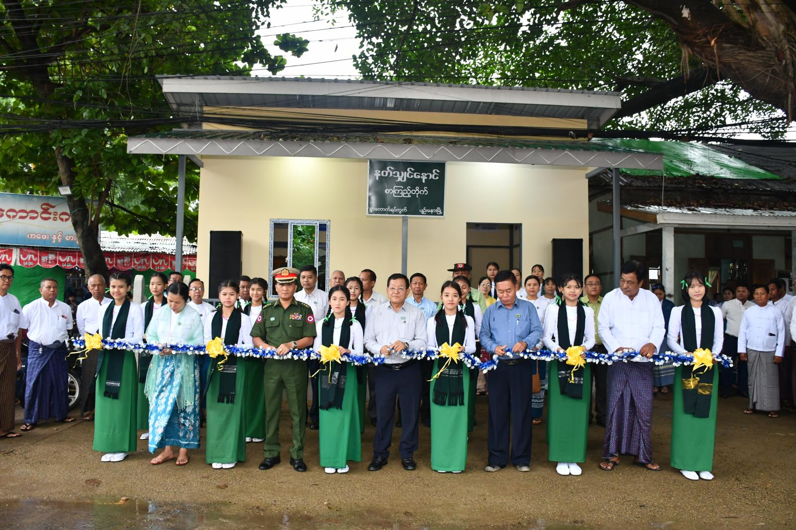 ဦးစွာ “နတ်သျှင်နောင်” စာကြည့်တိုက်အဆောက်အဦအသစ်ကို နေပြည်တော်ကောင်စီဝင် ဗိုလ်မှူးကြီးရဲမိုး၊ နေပြည်တော် စာကြည့်တိုက်များ ဖွံ့ဖြိုးတိုးတက်ရေးပူးပေါင်းဆောင်ရွက်မှုကော်မတီ ဒုတိယဥက္ကဋ္ဌ၊ နေပြည်တော်ကောင်စီဝင်ဦးမြင့်စိုး၊ နေပြည်တောင်ကောင်စီဝင် ဦးမင်းဦး၊ နေပြည်တော် ပြန်ကြားရေးနှင့်ပြည်သူ့ဆက်ဆံရေးဦးစီးဌာန၊ ညွှန်ကြားရေးမှူး ဒေါ်သင်းသင်းဇင်၊ ရပ်ကွက်အုပ်ချုပ်ရေးမှူး ဦးအောင်လွင်ဦးတို့က ဖဲကြိုးဖြတ်၍ ဖွင့်လှစ်ပေးကြသည်။