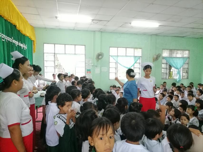 အဆိုပါဆောင်ရွက်မှုအား မြို့နယ်ကျန်းမာရေးဦးစီးဌာနမှ ကျန်းမာရေး၀န်ထမ်းများက ကျန်းမာရေးသတင်းပတ်အနေဖြင့် အပတ်စဉ် အခြေခံပညာကျောင်းများ၌ အသိပညာပေးလုပ်ငန်းများ ဆောင်ရွက်ပေးလျက်ရှိကြောင်း သိရသည်။