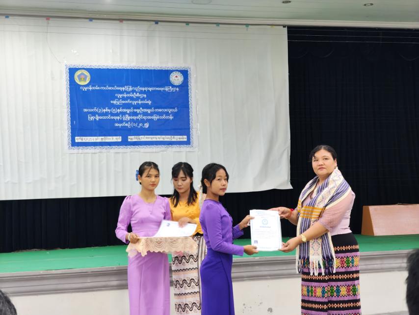 ထို့နောက် သင်တန်းသား၊သင်တန်းသူများ က သီချင်း၊ ကဗျာများဖြင့် ဖျော်ဖြေတင်ဆက်ခြင်းနှင့် သင်တန်းသား၊ သင်တန်းသူများ ပြုလုပ်ထားသော သင်ထောက်ကူပစ္စည်းများ ပြသခြင်းအား တာဝန်ရှိသူများ ကြည့်ရှုအားပေးပြီး အခမ်းအနားကို ရုပ်သိမ်းခဲ့ကြောင်း သိရှိရသည်။