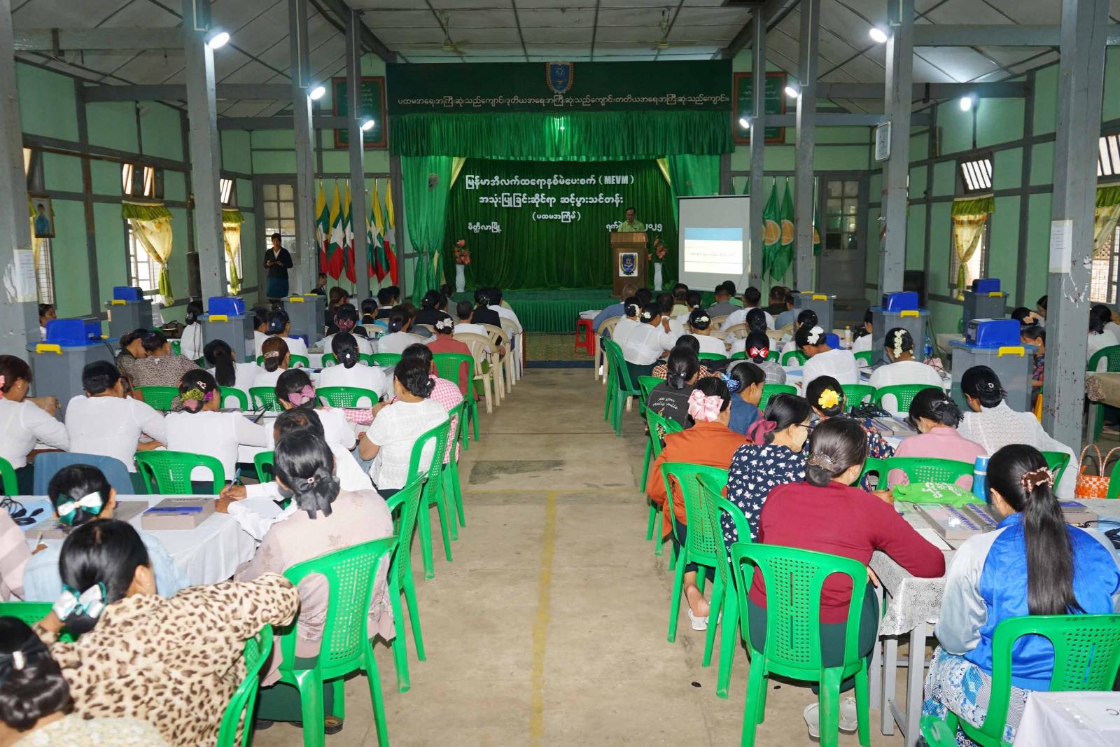 မန္တလေးတိုင်းဒေသကြီး မိတ္ထီလာမြို့နယ်တွင် မြန်မာ့အီလက်ထရောနစ်မဲပေးစက်(MEVM)များ လက်တွေ့ကိုင်တွယ် အသုံးပြုနည်းသင်တန်း(ပထမအကြိမ်) ဖွင့်ပွဲအခမ်းအနားကို ဇူလိုင် ၇ ရက် နံနက် ၉နာရီခွဲက အမှတ်(၁)အခြေခံပညာအထက်တန်းကျောင်း အစည်းအဝေးခန်းမတွင် ကျင်းပသည်။