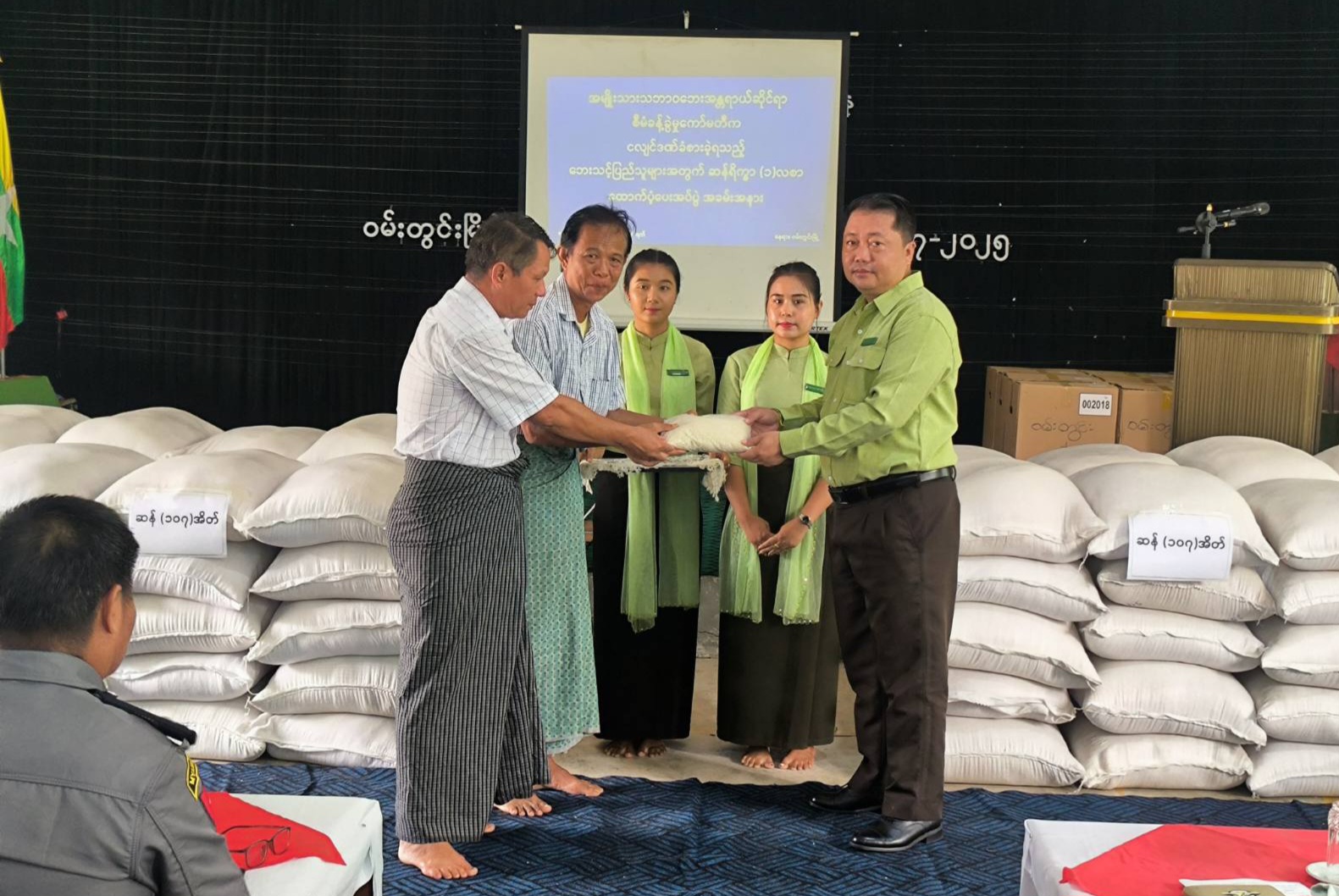 ဦးစွာ မြို့နယ်သဘာဝဘေးအန္တရာယ်ဆိုင်ရာစီမံခန့်ခွဲရေးအဖွဲ့ဥက္ကဋ္ဌ ဦးရဲမြင့်သိန်းက သဘာဝဘေးအန္တရာယ်ဆိုင်ရာ စီမံခန့်ခွဲရေးကော်မတီမှ ထောက်ပံ့သောဆန်ရိက္ခာထောက်ပံ့ခြင်းနှင့် စပ်လျဥ်း၍ အဖွင့်အမှာစကားပြောကြားခဲ့သည်။ ထို့နောက် ငလျင်ဘေးသင့် ပြည်သူ (၁၃၅) ဦးအား သဘာဝဘေးအန္တရာယ်ဆိုင်ရာ စီမံခန့်ခွဲရေးကော်မတီမှ ထောက်ပံ့သောဆန်ရိက္ခာများကို တာဝန်ရှိသူများက ထောက်ပံ့ပေးအပ်သည်။