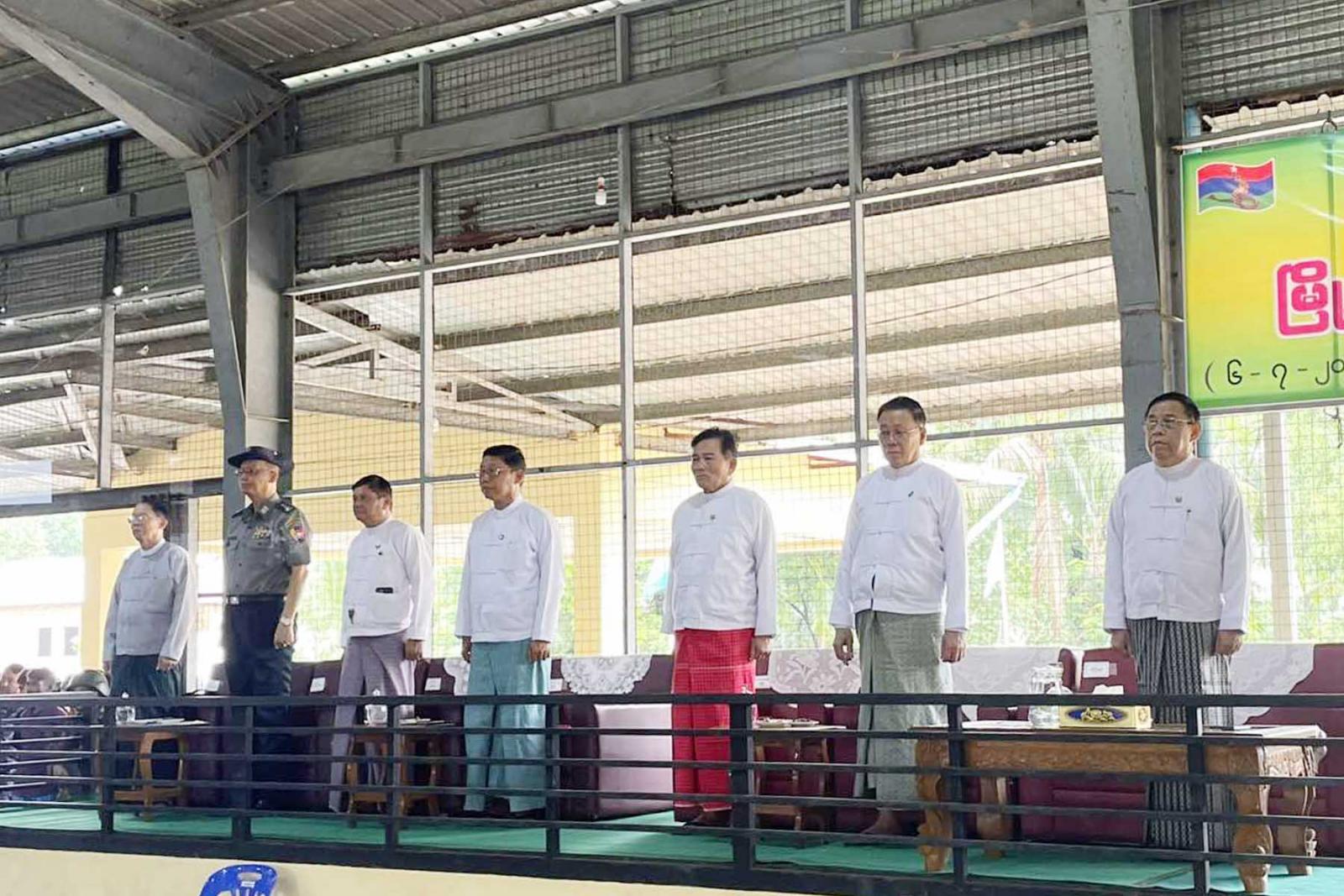 ရှေးဦးစွာ ပြိုင်ပွဲဝင်အသင်းများက ကွင်းအတွင်းနေရာယူပြီး တိုင်းဒေသကြီး၀န်ကြီးချုပ်အား စစ်ရေးပြမှူး ဦးဆောင်၍ ပြိုင်ပွဲဝင်အသင်းများက အလေးပြုပြီး တန်းအပ်သည်။