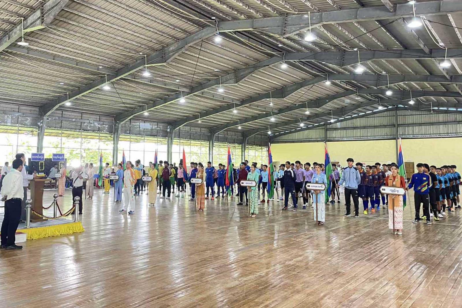 အခမ်းအနားတွင် တိုင်းဒေသကြီးဝန်ကြီးချုပ်ဦးမြတ်ကိုက မြို့နယ်ပေါင်းစုံ (အမျိုးသား) ဖူဆယ်ဘောလုံးပြိုင်ပွဲသည် ရှမ်းပြည်နယ်၊ တောင်ကြီးမြို့၌ ၂၀၂၅ ခုနှစ်၊ ဩဂုတ်လ (၂၀)ရက်နေ့တွင် ကျင်းပမည့် ဖူဆယ်ဘောလုံးပြိုင်ပွဲကို သွားရောက်ယှဉ်ပြိုင်ရန် တိုင်းလက်ရွေးစင် ရွေးချယ်နိုင်ရေးအတွက် ကျင်းပပြုလုပ်ခြင်းဖြစ်သလို မြို့နယ်အသီးသီးက အားကစားသမား အချင်းချင်းချစ်ကြည်ရင်းနှီးမှုရရှိရေး၊ မျိုးဆက်သစ် ဖူဆယ်ဘောလုံးသမားများ ထွက်ပေါ်လာရေးနှင့် ဖူဆယ်ဘောလုံး အားကစားအဆင့်အတန်းတိုးတက်မြင့်မားလာရေးတို့အတွက် ရည်ရွယ်ကျင်းပသည့် ပြိုင်ပွဲတစ်ခုလည်းဖြစ်ကြောင်း၊ ဖူဆယ်ဘောလုံးအားကစားသမားများ အနေဖြင့်အနိုင်/အရှုံးတစ်ခုတည်းကိုသာ ဦးတည်ယှဉ်ပြိုင်သည်မျိုး မဟုတ်ဘဲ မိမိမြို့နယ်၏ ဂုဏ်၊တိုင်းဒေသကြီးဂုဏ်၊ နိုင်ငံတော်၏ဂုဏ်ကို ဆောင်နိုင်မည့်ထိုက်တန် ထူးချွန်သောအားကစားသမားကောင်းများ ပေါ်ထွက်ရေးနှင့်သတ္တိရှိမှု၊ သီးခံနိုင်မှု၊ ကျွမ်းကျင်မှု၊ စိတ်ဓါတ်ကြံ့ခိုင်မှု၊ စည်းလုံးညီညွှတ်မှု၊ ယဉ်ကျေးမှု၊ စည်းကမ်းကို ရိုသေးလိုက်နာတတ်မှု စသည့် အခြေခံကောင်းများကို အစွမ်းကုန် ဖော်ထုတ်ပြသရင်း အနိုင်ရရှိရေးအတွက် ကြိုးစားယှဉ်ပြိုင် သွားကြရန်လိုအပ်ကြောင်း၊ ယခုပြိုင်ပွဲကနေ အရည်အချင်းရှိသည့် ဖူဆယ်ဘောလုံး အားကစားသမားများကို စိစစ်ရွေးချယ်ပြီး ပြည်နယ်နှင့်တိုင်းဒေသကြီးပြိုင်ပွဲကိုစေလွှတ် ယှဉ်ပြိုင်သွားမှာဖြစ်သောကြောင့် ဖူဆယ်ဘောလုံးအားကစားသမားများအနေဖြင့် တိုင်းဒေသကြီး လက်ရွေးစင်အဖြစ် ရွေးချယ်ခံရအောင် ကိုယ်စီကျွမ်းကျင်မှု၊ ပူးပေါင်းဆောင်ရွက်မှု၊ စည်းလုံးညီညွတ်မှုတို့ဖြင့် အနိုင်မခံအရှုံးမပေးသော အားကစားစိတ်ဓါတ်အပြည့်အဝဖြင့် ကြိုးစား ယှဉ်ပြိုင်ကစားကြရန်လိုအပ်ကြောင်း၊ တိုင်းဒေသကြီးအစိုးရအဖွဲ့အနေဖြင့် ပြီးခဲ့သည့် အမျိုးသား အားကစားပွဲတော် ဖူဆယ်ဘောလုံးပြိုင်ပွဲတွင် တတိယရရှိခဲ့သောကြောင့် တိုင်းဒေသကြီး အမျိုးသားဖူဆယ် ဘောလုံးအသင်းကို ထိုက်ထိုက်တန်တန်ဂုဏ်ပြုချီးမြှင့်ခဲ့ပြီးဖြစ်သလို ယခုကျင်းပမည့်ပြည်နယ်နှင့် တိုင်းဒေသကြီး ဖူဆယ်ဘောလုံးပြိုင်ပွဲတွင် အောင်မြင်မှုရရှိလာပါက ထပ်မံဂုဏ်ပြုချီးမြှင့်ပေးသွားမှာဖြစ်ကြောင်း၊ အားကစားသမားများအနေဖြင့် အရည်အချင်းပြည့်ဝသော မြို့နယ်ဂုဏ်ဆောင်၊ တိုင်းဒေသကြီးဂုဏ်ဆောင်၊ အားကစားသမားကောင်းများ ဖြစ်အောင် ကြိုးစား ယှဉ်ပြိုင်ကြရန် လိုအပ်ကြောင်း ပြောကြားသည်။