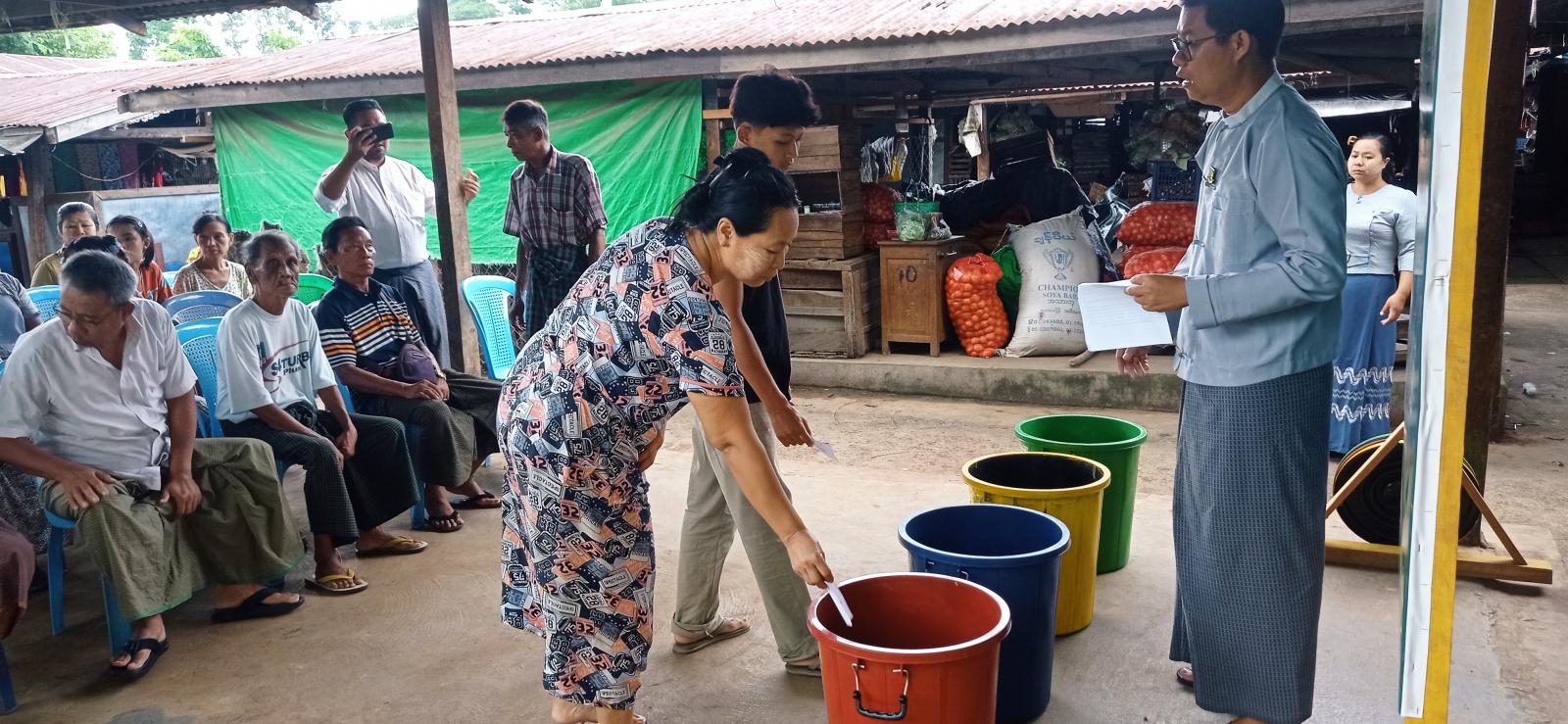 ဆက်လက်၍ ခရိုင်ပတ်ဝန်းကျင်ထိန်းသိမ်းရေးဦးစီးဌာနမှ လက်ထောက်ညွှန်ကြားရေးမှူးက အမှိုက်အမျိုးအစားခွဲခြားခြင်း၊ အမှိုက်စို(Wet Waste)အတွက် အမှိုက်ပုံးအစိမ်းရောင်၊ အမှိုက်ခြောက်(Dry Waste)အတွက် အမှိုက်ပုံး အဝါရောင်၊ ပလတ်စတစ်အမှိုက်(Plastic Waste)အတွက် အမှိုက်ပုံး အပြာရောင်၊ ဘေးအန္တရာယ်ရှိအမှိုက်(Hazardous Waste)အတွက် အမှိုက်ပုံး အနီရောင်တို့ကို သတ်မှတ်ပေးပြီး တက်ရောက်လာကြသော ဈေးသူ၊ ဈေးသားများနှင့် စည်ပင်သာယာရေးဝန်ထမ်းများက အမှိုက်ခွဲခြားစွန့်ပစ်ခြင်းနှင့် လက်တွေ့သရုပ်ပြသခြင်းကို ပြုလုပ်ဆောင်ခဲ့ကြကြောင်း သိရသည်။