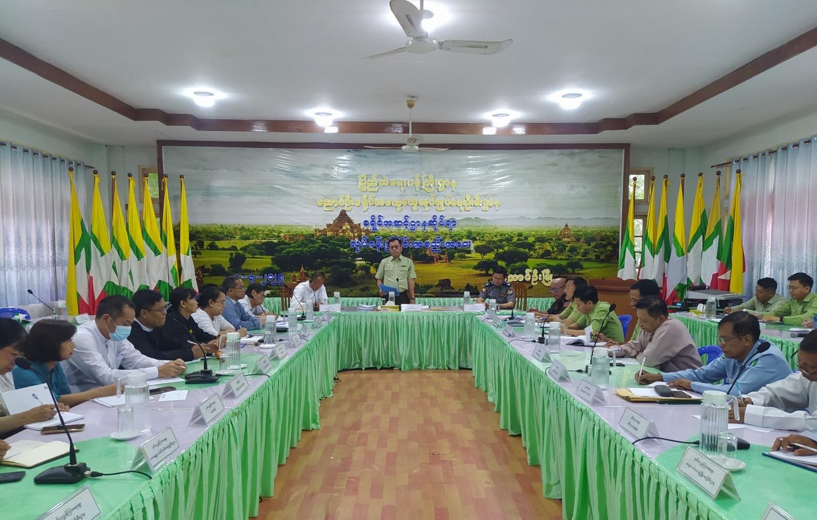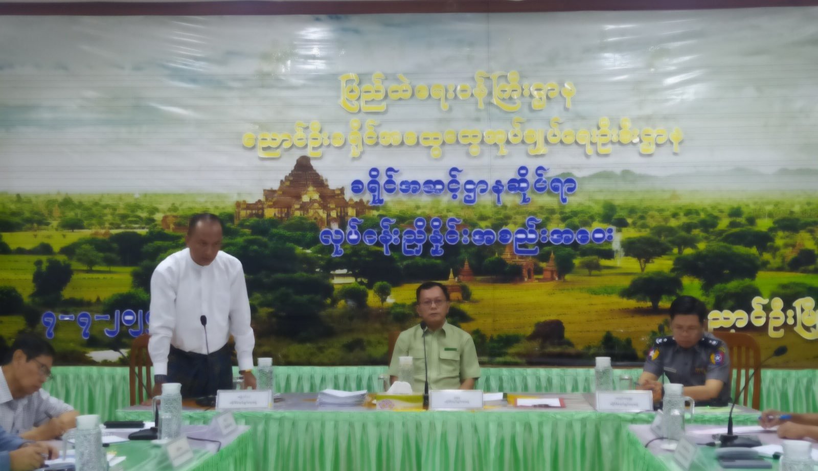 အစည်းအဝေးတွင် ခရိုင်စီမံအုပ်ချုပ်ရေးအဖွဲ့ဥက္ကဋ္ဌက အမှာစကားပြောကြားကာ အကြီးအကဲခရီးစဉ် လမ်းညွှန်မှာကြားချက်များအပေါ် အချိန်မီပြီးစီးအောင်ဆောင်ရွက်နိုင်ရေး၊ အထက်ဌာနအဆင့်ဆင့်မှ ညွှန်ကြားချက်များအား သိရှိလိုက်နာဆောင်ရွက်ရေး၊ ဌာနဆိုင်ရာများအနေဖြင့် မိမိတို့ဌာနလုပ်ငန်းများ ဆောင်ရွက်ရာတွင် လုံခြုံရေးအသိ၊ လုံခြုံရေးသတိဖြင့် လုပ်ကိုင်ဆောင်ရွက်စေရေး ပြောကြားကာ တက်ရောက်လာသည့် ဌာနများအလိုက်တင်ပြသည့် လိုအပ်ချက်များအပေါ် ပေါင်းစပ်ဖြည့်ဆည်းဆောင်ရွက်ပေးခဲ့ကြောင်း သိရသည်။