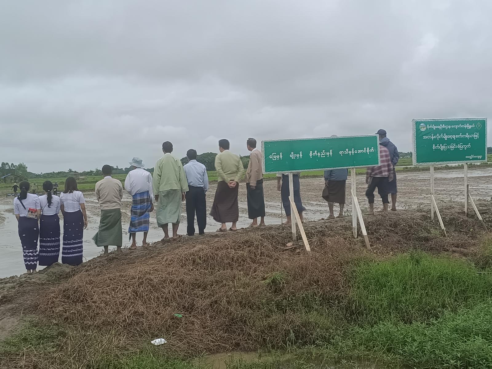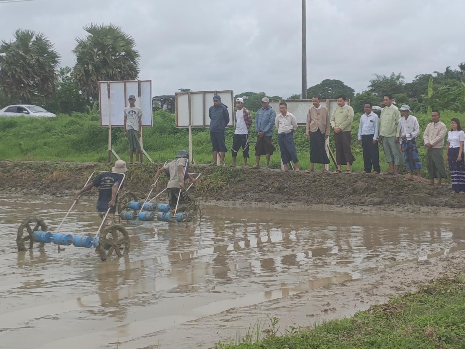 အဆိုပါ မိုးစပါး(seeder)ဖြင့် စံပြစိုက်ခင်းစိုက်ပျိုးရာနေရာသို့ မြို့နယ်စီမံအုပ်ချုပ်ရေးအဖွဲ့ ဥက္ကဋ္ဌဦးဘုန်းခန့်အောင်၊ မြို့နယ်စိုက်ပျိုးရေးဦးစီးဌာန မြို့နယ်ဦးစီးမှူးဦးမျိုးသန့်နှင့်၀န်ထမ်းများ၊ မြို့နယ်မြေစာရင်းဦးစီးဌာန မြို့နယ်ဦးစီးမှူးနှင့်၀န်ထမ်းများ၊ မြို့နယ်စိုက်ပျိုးရေးကြီးကြပ်မှုအဖွဲ့နှင့်အဖွဲ့၀င်များ ကျေးရွာအုပ်စုအုပ်ချုပ်ရေးမှူးများနှင့် တောင်သူများ စုစုပေါင်း အင်အား(၃၀)ဦး တက်ရောက်ခဲ့ကြသည်။