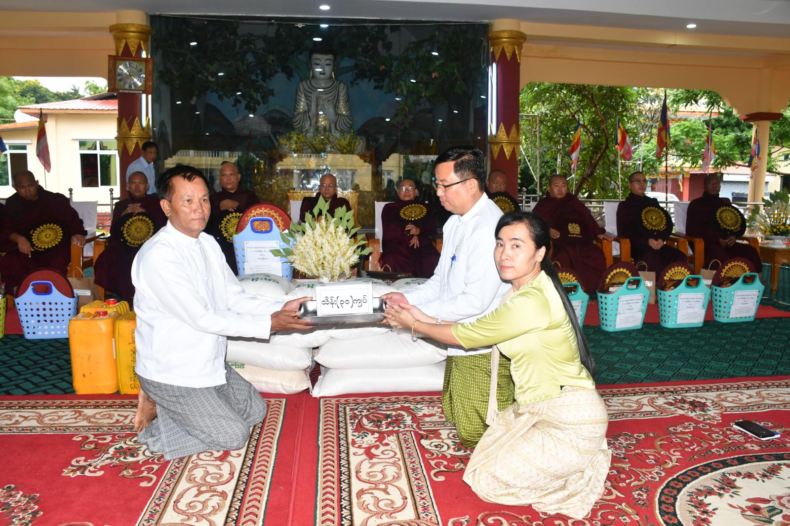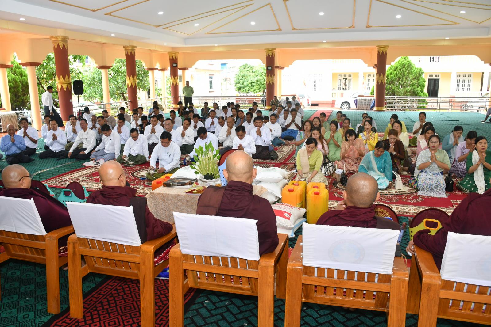 ထို့နောက် နေပြည်တော်ကောင်စီဝင် ဦးဇေယျာလင်းသည် နေပြည်တော်တိုင်း၊ ခရိုင်မှ ဌာနဆိုင်ရာအကြီးအကဲများနှင့် အလှူရှင်များ၊ မြို့နယ်စီမံအုပ်ချုပ်ရေးအဖွဲ့ဥက္ကဋ္ဌ ဦးအောင်သူ၊ မြို့နယ်အဆင့်ဌာနဆိုင်ရာအကြီးအကဲများ၊ အလှူရှင်များနှင့်အတူ ဆရာစံရပ်ကွက်၊ မဟာဇနကပရိယတ္တိစာသင်တိုက်သို့ ရောက်ရှိ၍ ကျောင်းထိုင်ဆရာတော်ဘဒ္ဒန္တ၀ဏ္ဏာရဟအား ဖူးမြော်ကြည်ညိုကာ ဆရာတော်များထံမှ ငါးပါးသီလခံယူဆောက်တည်၍ ဘဒ္ဒန္တ၀ဏ္ဏာရဟနှင့် ပင့်သံဃာ ၁၁ ပါးအား စုပေါင်းဝါဆိုသင်္ကန်းများ ဆက်ကပ်လှူဒါန်းခဲ့ပြီးနောက် ကျောင်းဆောင်သစ်အတွက် ငွေကျပ် သိန်း ၃၀၊ ဆန်၊ ဆီ၊ ဆားနှင့် လှူဖွယ်ပစ္စည်းများ ဆက်ကပ်လှူဒါန်းခဲ့ပြီး လှူဒါန်းမှုအစုစုတို့ကို ဘဒ္ဒန္တ၀ဏ္ဏာရဟဆရာတော်က ရေစက်သွန်းချအမျှပေးဝေခဲ့ပြီးနောက် ဆရာတော်နှင့် သာမဏေများအား နေ့ဆွမ်းဆက်ကပ်လှူဒါန်းပြီး ဧည့်ပရိသတ်များအား နေ့လယ်စာဖြင့် ကျွေးမွေးလှူဒါန်းခဲ့သည်။