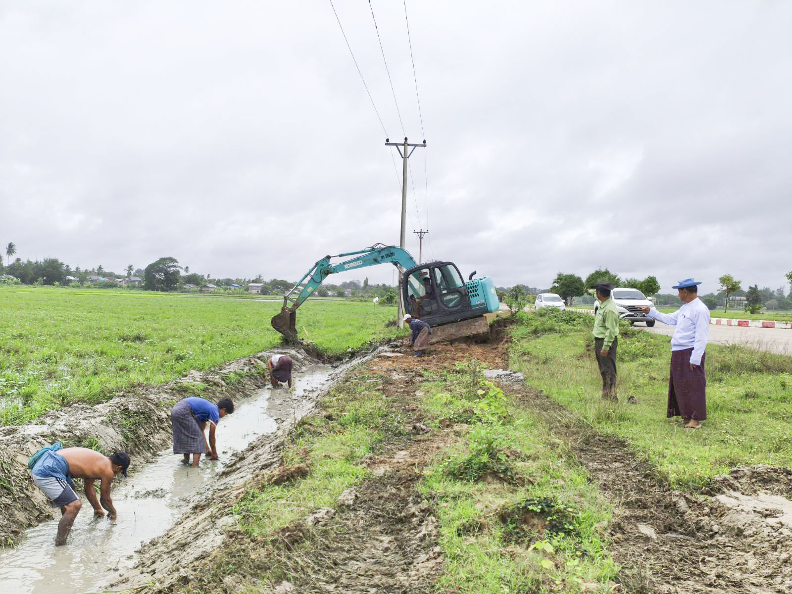နေပြည်တော်ကောင်စီဝင် ဦးခင်မောင်လတ်သည် မြို့နယ်စိုက်ကြပ်ကော်မတီဥက္ကဋ္ဌ ဦးနိုင်ဝင်းနှင့်အဖွဲ့ဝင်များ၊ ဌာနဆိုင်ရာတာဝန်ရှိသူများနှင့်အတူ ယမန်နေ့က ဒက္ခိဏသီရိမြို့နယ်၊ ရန်အောင်မြင်ကျေးရွာအုပ်စု၊ ကွင်းအမှတ် (၁၈၂၀)ကွင်းအတွင်း ရေစီးရေလာကောင်းမွန်စေရေးအတွက် တူးဖော်ဆောင်ရွက်၍ကျန်ရှိသည့် ရေနုတ်မြောင်း တူးဖော်ဆောင်ရွက်နေမှုအခြေအနေအား ကြည့်ရှုစစ်ဆေးသည်။