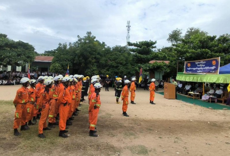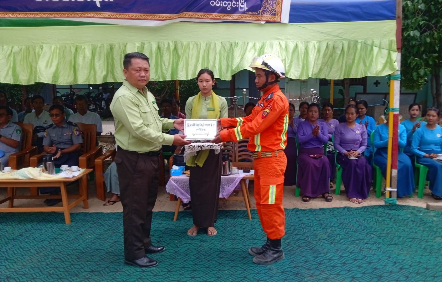 ဦးစွာ မြို့နယ်မီးသတ်ဦးစီးဌာနမှ ငလျင်ဘေးအန္တရာယ်သဏ္ဌာန်တူ ဇာတ်တိုက်သရုပ်ပြခြင်းကို ဆောင်ရွက်ခဲ့သည်။ ထို့နောက် မြို့နယ်စီမံအုပ်ချုပ်ရေးအဖွဲ့ဥက္ကဋ္ဌ မြို့နယ်အုပ်ချုပ်ရေးမှူး ဦးရဲမြင့်သိန်း၏ လမ်းညွှန်မှုကို တာဝန်ရှိသူများမှ ခံယူခဲ့ကြသည်။ ဆက်လက်၍ ငလျင်ဘေးအန္တရာယ် သဏ္ဌာန်တူဇာတ်တိုက် သရုပ်ပြခြင်းကို ဆောင်ရွက်ခဲ့ကြသော တာဝန်ရှိသူများကို မြို့နယ်စီမံအုပ်ချုပ်ရေးအဖွဲ့ဥက္ကဋ္ဌမှ ဂုဏ်ပြုငွေများ ချီးမြှင့်ခဲ့သည်။
