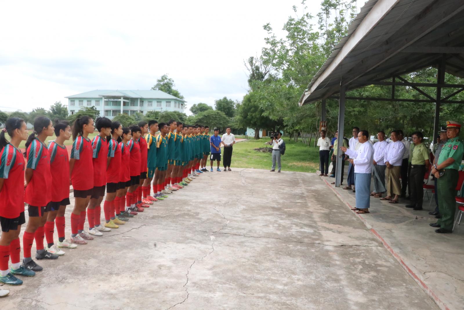 ဦးစွာ တိုင်းဒေသကြီးဝန်ကြီးချုပ်နှင့် တာဝန်ရှိသူများသည် အားကစားနှင့်ကာယပညာသိပ္ပံ(မုံရွာ)ရှိ သတ်မှတ်အားကစားရုံများတွင် ဘောလုံး၊ ပိုက်ကျော်ခြင်း၊ ကရာတေး၊ အလေးမနှင့် လက်ဝှေ့အားကစားနည်းများ စုဖွဲ့လေ့ကျင့်နေမှုများအား လိုက်လံကြည့်ရှုခဲ့ကြပြီး သက်ဆိုင်ရာအားကစားနည်းပြများ သင်တန်းသား၊ သင်တန်းသူများနှင့် တွေ့ဆုံပြီး သင်တန်းသား၊ သင်တန်းသူများအနေဖြင့် မိမိတို့ လေ့ကျင့်နေကြသည့် အားကစားနည်းများအလိုက် အစုအဖွဲ့လိုက်သော်လည်းကောင်း၊ တစ်ဦးချင်းသော်လည်းကောင်း အာကစားနည်းများ ပညာသင်နှစ် တစ်နှစ်ထက်တစ်နှစ် တိုးတက်မြင့်မားလာအောင် အစွမ်းကုန်လေ့ကျင့်သွားကြရန် လိုအပ်ပါကြောင်း၊ အရည်အချင်းရှိပြီး အားကစားသမားများအနေဖြင့်လည်း ယခင်နှစ်များထက် စံချိန်တိုးတက်အောင် အစဉ်တစိုက် လေ့ကျင့်သွားကြရန်နှင့် ယှဉ်ပြိုင်သည့်ပြိုင်ပွဲများတွင်လည်း ထိုက်တန်သည့် ဆုတံဆိပ်များရရှိအောင် ကြိုးစားယှဉ်ပြိုင်သွားကြရန် လိုအပ်ပါကြောင်း၊ မိမိတို့တိုင်းဒေသကြီး အစိုးရအဖွဲ့အနေဖြင့်လည်း ထူးချွန်အားကစားသမားများအား ထိုက်ထိုက်တန်တန် ဂုဏ်ပြုချီးမြှင့်ပေးသွားမည်ဖြစ်ပါကြောင်း ပြောကြားခဲ့သည်။