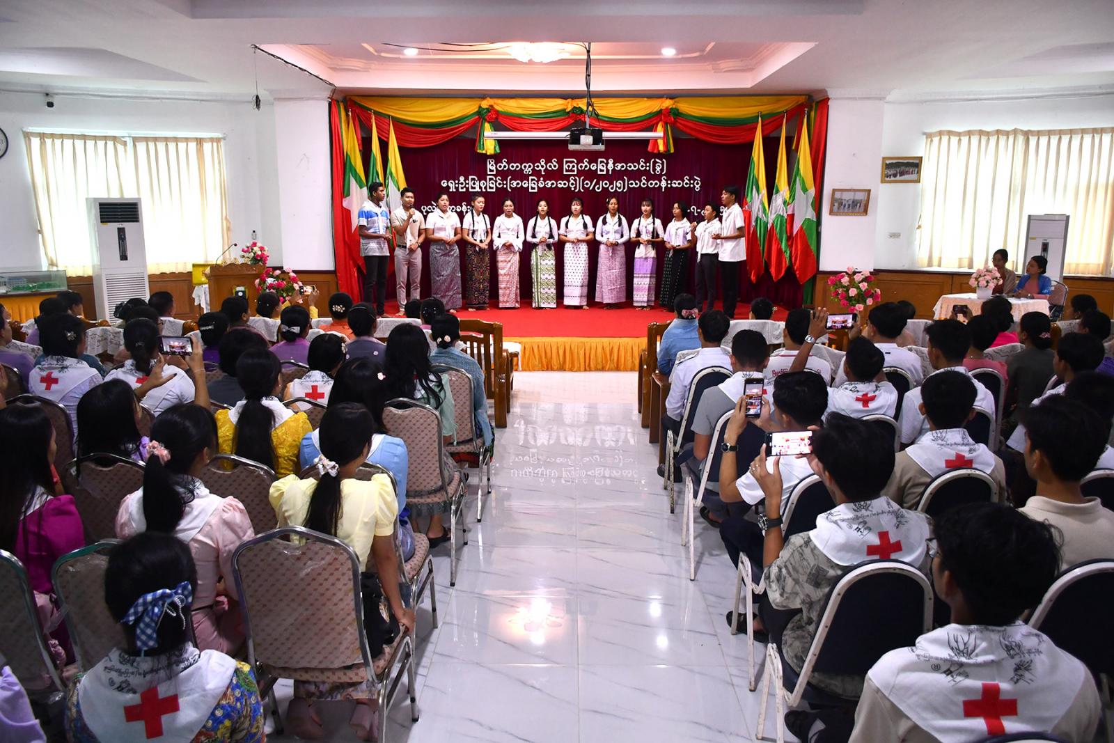 သင်တန်းဆင်းပွဲတွင် တက္ကသိုလ်ကျောင်းသား/ကျောင်းသူများက “တစ်မိုးအောက်က ကြက်ခြေနီ ” သီချင်းဖြင့် ဂုဏ်ပြုသီဆိုကြပြီး မြိတ်တက္ကသိုလ် ပါမောက္ခချုပ် ဒေါက်တာ နေသွယ်ကြည် က သင်တန်းဆင်းအမှာစကား ပြောကြားသည်။ ထို့နောက် မြိတ်ခရိုင် ကြက်ခြေနီကြီးကြပ်မှုကော်မတီ ဒု-ဥက္ကဋ္ဌ ဦးမျိုးအောင်က သင်တန်းနှင့်ပတ်သက်၍ ရှင်းလင်းပြောကြားသည်။