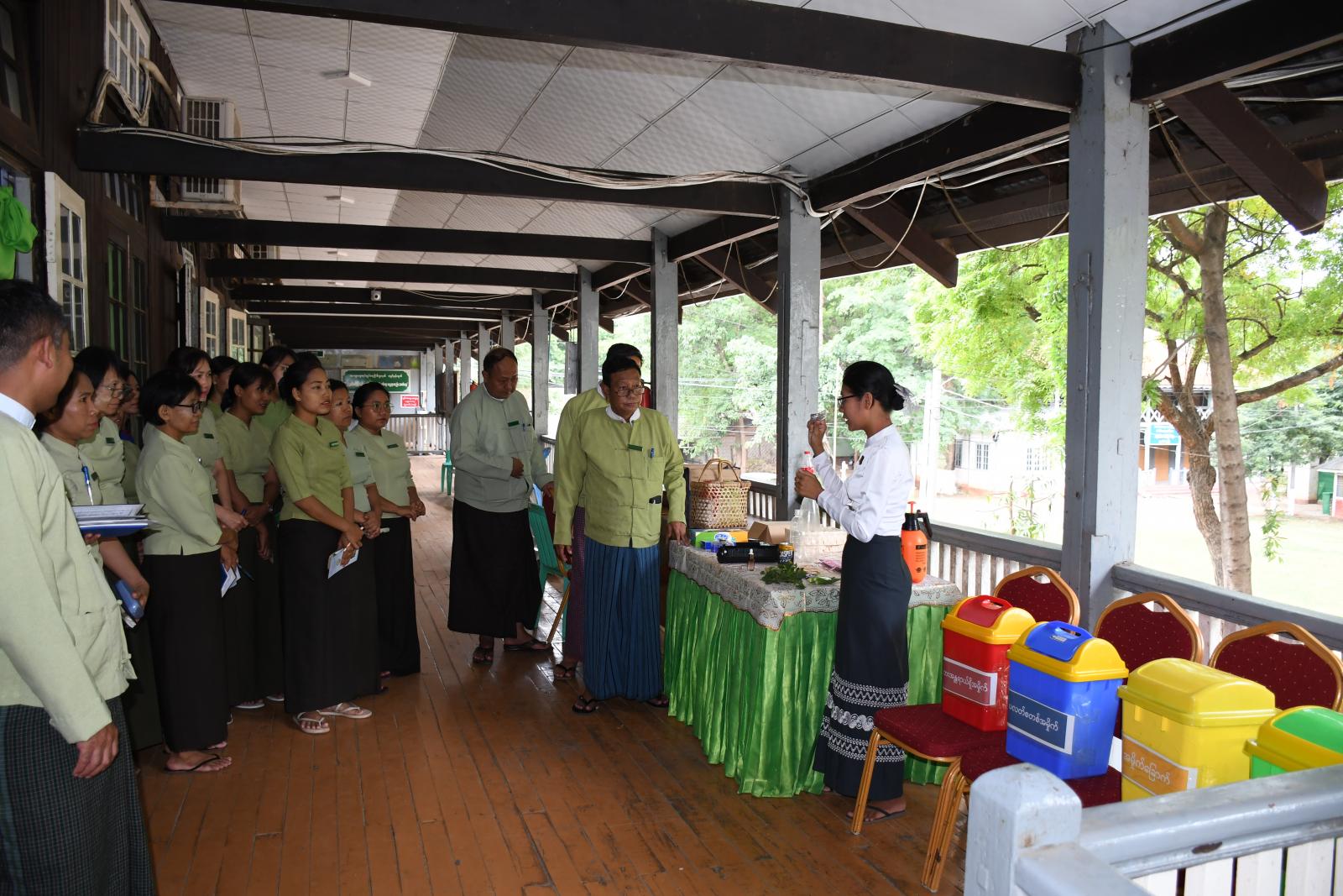 ထို့နောက် ခရိုင်စီအုပ်ချုပ်ရေးအဖွဲ့ဥက္ကဋ္ဌသည် အခမ်းအနားသို့ တက်ရောက်လာကြသော တာဝန်ရှိသူများနှင့် ဝန်ထမ်းများပူးပေါင်းပြီး အမှိုက်ခြောက်၊ အမှိုက်စို၊ အန္တရာယ်ရှိသောအမှိုက်နှင့် ပလတ်စတစ်အမှိုက် ခွဲခြားစွန့်ပစ် လက်တွေ့သရုပ်ပြသနေမှုအား ကြည့်ရှုအားပေးခဲ့ပြီးနောက် ခရိုင် ပတ်ဝန်းကျင်ထိန်းသိမ်းရေးဦးစီးဌာနမှ တက်ရောလာကြသူများအား စွန့်ပစ်ပစ္စည်းများ စနစ်တကျစီမံခန့်ခွဲခြင်းနှင့် အမှိုက်အမျိုးအစား ခွဲခြားစွန့်ပစ်ခြင်း အသိပညာပေး လက်ကမ်းစာစောင်များကို အခမဲ့ဝေငှပေးခဲ့ကြောင်း သိရသည်။