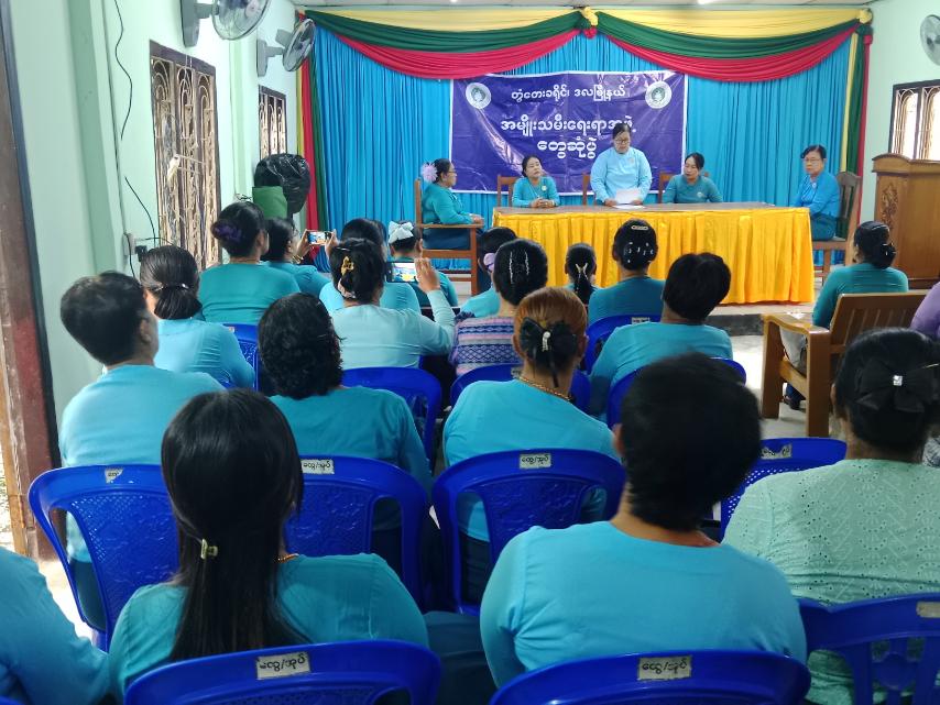 တွေ့ဆုံပွဲတွင် မြို့နယ်အမျိုးသမီးရေးရာအဖွဲ့ဥက္ကဋ္ဌ ဒေါ်နုနုထွေးက မြို့နယ်အမျိုးသမီးရေးရာအဖွဲ့၏ အဖွဲ့၀င်အသစ်များ၊ မိခင်နှင့်ကလေးစောင့်ရှောက်ရေးအသင်း၏ အသင်း၀င်အသစ်များအား မိတ်ဆက်စကားပြောကြားခဲ့ပြီး အမျိုးသမီးရေးရာအဖွဲ့၏ အခြေခံစည်းမျဉ်းများအကြောင်း၊ မိခင်နှင့်ကလေးစောင့်ရှောက်ရေးအသင်း၏ လုပ်ငန်းစဉ်များနှင့် ရှေ့လုပ်ငန်းစဉ်များအကြောင်း ရှင်းလင်းပြောကြားခဲ့သည်။ ဆက်လက်၍ အမျိုးသမီးများနှင့် ပတ်သက်၍ အမျိုးသမီးများအပေါ် ခွဲခြားဆက်ဆံမှုများ၊ အကြမ်းဖက်မှုများ လျော့ပါးပပျောက်စေမှုနှင့် အမျိုးသမီး အခွင့်အရေးဆိုင်ရာများကို ရှင်းလင်းပြောကြားကာ တွေ့ဆုံပွဲသို့ တက်ရောက်လာကြသည့် ရပ်ကွက်၊ ကျေးရွာအမျိုးသမီးအဖွဲ့ဝင်များက သိရှိလိုသည်များကို ဆွေးနွေးတင်ပြကြရာ မြို့နယ်အမျိုးသမီးရေးရာအဖွဲ့ဥက္ကဋ္ဌ ဒေါ်နုနုထွေးက ပြန်လည်ဖြေကြားခဲ့သည်။