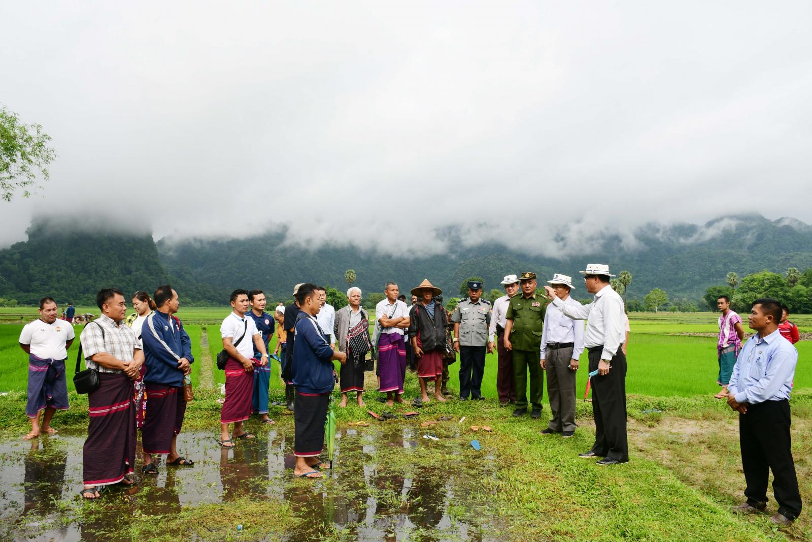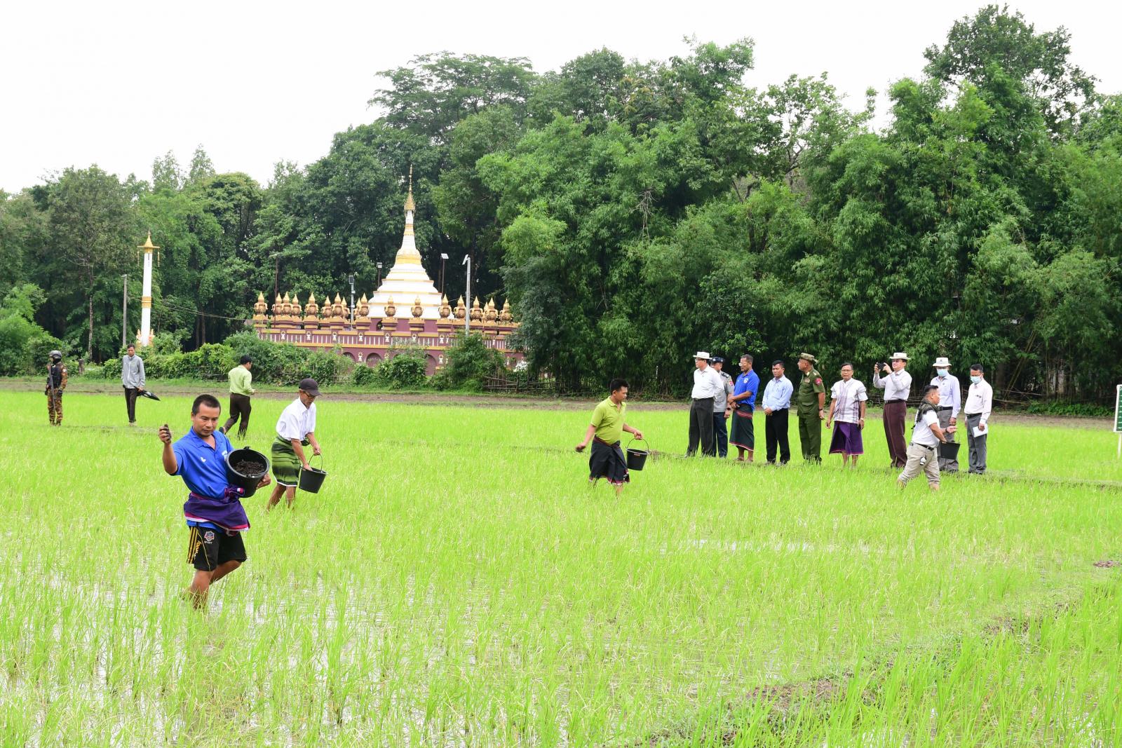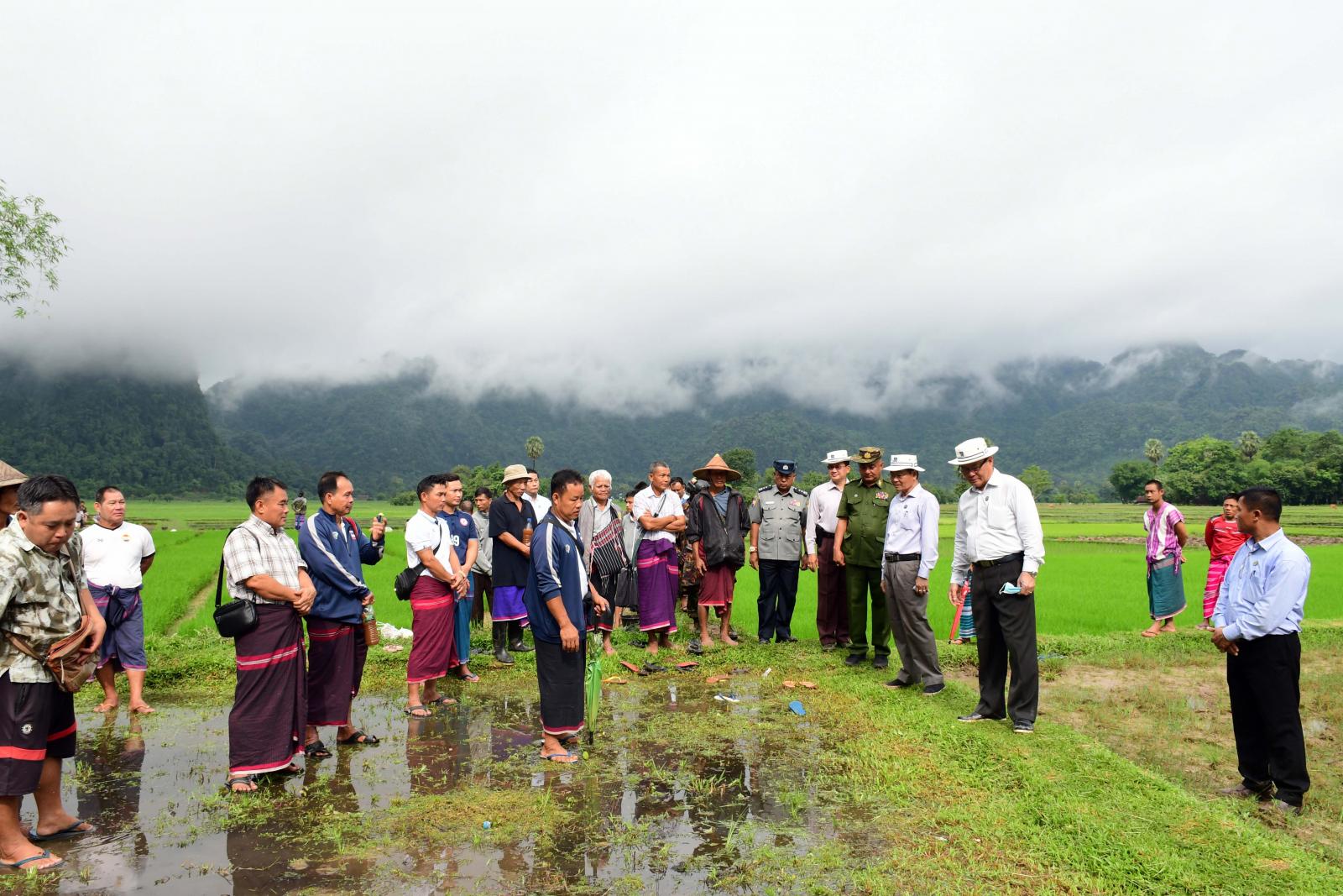 ယင်းနောက် ပြည်နယ်ဝန်ကြီးချုပ်နှင့်အဖွဲ့သည် ဘားအံမြို့နယ်၊ လှိုင်ကမ္ဘာကျေးရွာအုပ်စု၊ ကွင်းအမှတ် - ၁၁၉၂(က)၊ ရေတံခွန်ကွင်းရှိ တောင်သူဦးပြုံး၏မိုး စပါးမျိုးစေ့ထုတ်စိုက်ခင်း ၂ ဒသမ ၁၇ ဧကကို ကြည့်ရှုအားပေးပြီး ဘားအံမြို့နယ်၊ တော်ပုံကျေးရွာအုပ်စု၊ ကော့မရမ်းကျေးရွာ၊ ကွင်းအမှတ်-၁၁၈၉(ခ)၊ ထမ္မလောက်ကွင်းရှိ တောင်သူ ဦးအောင်စိုးသိန်း၏ မိုးစပါးမျိုးစေ့ထုတ် စံပြစိုက်ခင်း ငါးဧကတွင် သဘာဝမြေဩဇာနှင့်ယူရီးယားဓာတ်မြေဩဇာ အချိုးကျရောနှောကြဲပက်ခြင်းကို ကြည့်ရှုအားပေးခဲ့ကြသည်။