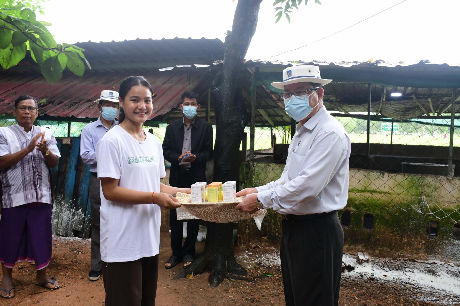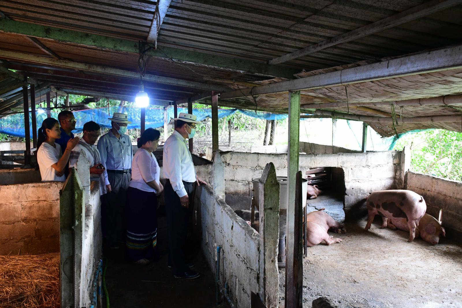 ဆက်လက်၍ ပြည်နယ်ဝန်ကြီးချုပ်နှင့်အဖွဲ့သည် ကော့မရမ်းကျေးရွာရှိ တောင်သူဦးအောင်စိုးသိန်း၏ တစ်ပိုင်တစ်နိုင် အသားတိုးဝက် ၃၅ ကောင် မွေးမြူရေးခြံနှင့် တောင်သူဦးစောချဉ်ချဉ်၏ တစ်ပိုင်တစ်နိုင်အသားတိုး ဝက် ၂၉ ကောင် မွေးမြူရေးခြံတို့ကို သွားရောက်ကြည့်ရှုအားပေးပြီး မွေးမြူရေးနှင့်ကုသရေးဦးစီးဌာနမှအခမဲ့ပေးအပ်သည့် တိရစ္ဆာန်သုံးဆေးဝါးများကို ချီးမြှင့်ပေးအပ်သည်။