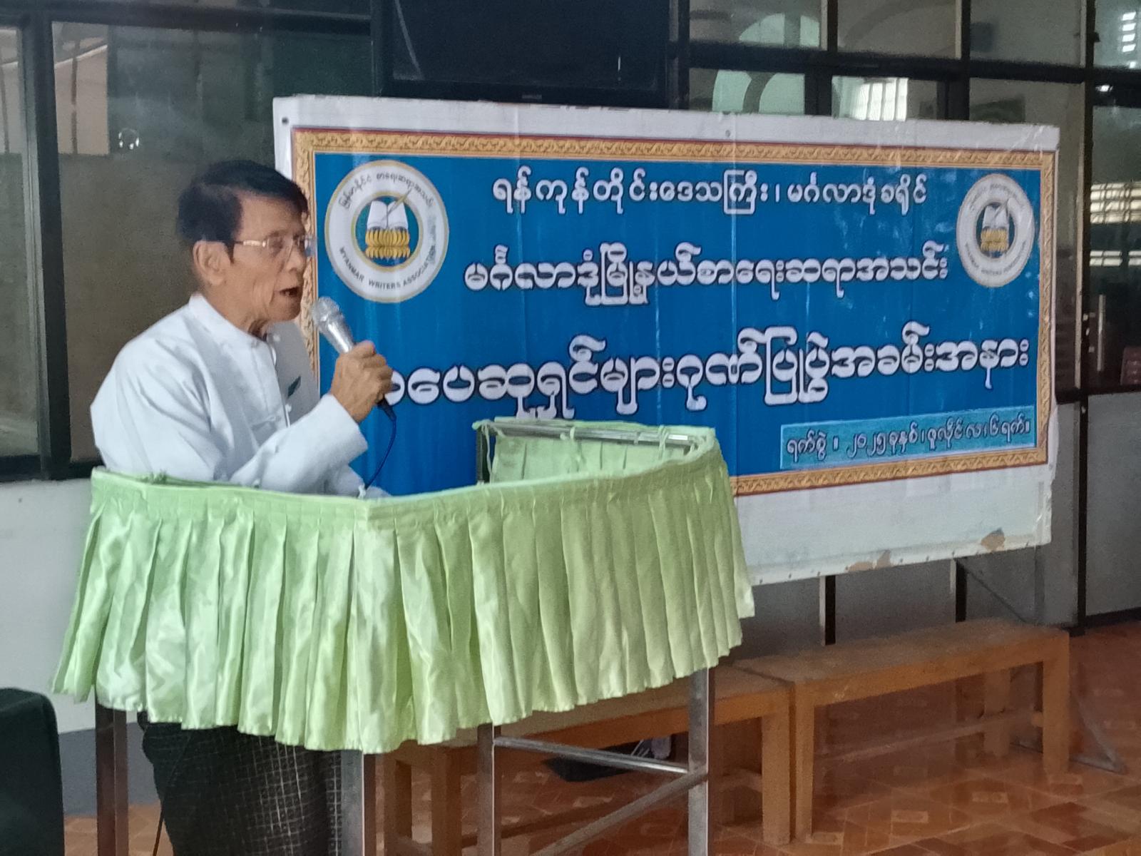 ရန်ကုန်တိုင်းဒေသကြီး၊ မင်္ဂလာဒုံခရိုင်၊ မင်္ဂလာဒုံမြို့နယ် စာရေးဆရာအသင်းမှ ကြီးမှူးကျင်းပသော စာပေဆုရှင်များ ထပ်ဆင့်ဂုဏ်ပြုပွဲအခမ်းအနားကို ဇူလိုင် ၆ ရက်နေ့ မွန်းလွဲ ၁ နာရီက ထောက်ကြန့်မြို့ရှိ သပြေညိုခန်းမ၌ ကျင်းပပြုလုပ်ခဲ့ရာ အခမ်းအနားတွင် မြို့နယ်စာရေးဆရာအသင်းနာယကကြီး အောင်သူရိန်(ပုလဲ)က နှုတ်ခွန်းဆက်အမှာစကားပြောကြားခဲ့သည်။