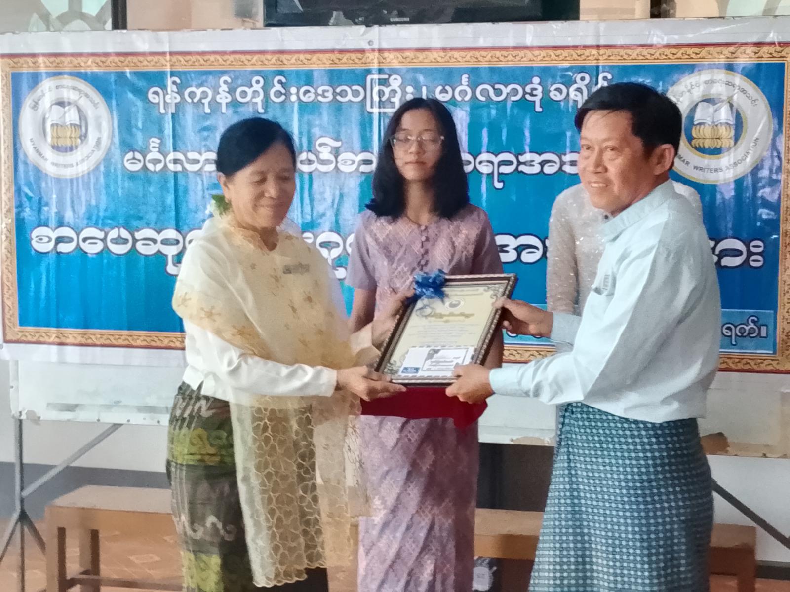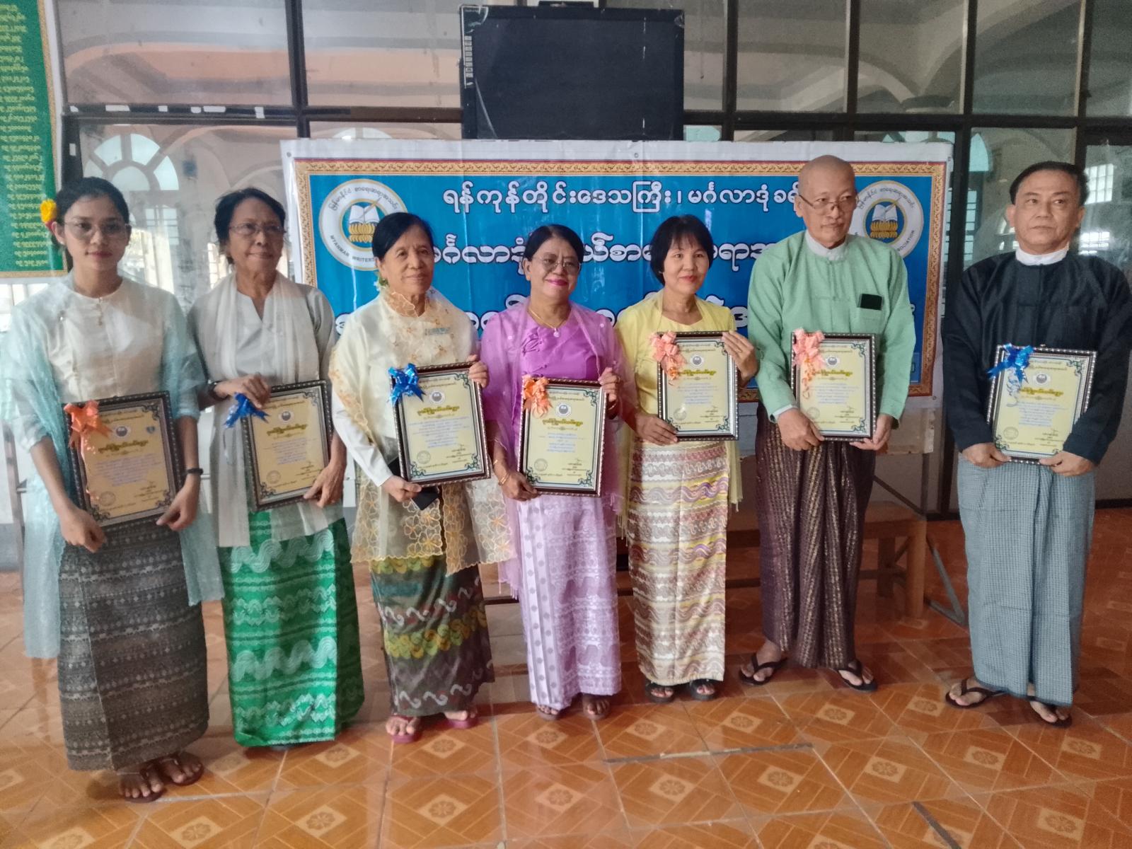 ဆက်လက်၍ စာပေဆုရှင်များအား ထပ်ဆင့်ဂုဏ်ပြုပွဲကိုကျင်းပရာ ၂၀၂၃ ခုနှစ် စာပေဗိမာန်စာမူဆုပြိုင်ပွဲတွင် “မေတ္တာပန်းတို့ လန်းစွင့်ဝေဖြာ မြေအောက်ကမ္ဘာနှင့် ဝတ္ထုတိုပေါင်းချုပ်” ဖြင့် ဒုတိယဆုရရှိခဲ့သော ဆရာမလွမ်းနိုနို(ဘော်မြေ)အားလည်းကောင်း၊ “ပရိုင်းမိတ်မှ ပျူသို့ယဉ်ကျေးမှုအထောက်အထားများ” စာမူဖြင့် သုတပဒေသာ(ဝိဇ္ဇာ) တတိယဆုရရှိခဲ့သော ဆရာမောင်သာ(ရှေး/သု)အားလည်းကောင်း၊ ၂၀၂၅ ခုနှစ် ဇူလိုင်လ ၃ ရက် မြန်မာအမျိုးသမီးများနေ့ အထိမ်းအမှတ် ကဗျာ/ဝတ္ထုတိုပြိုင်ပွဲတွင် “ညွှန်းဖွဲ့စာစီ မြန်မာအမျိုးသမီးများဂုဏ်ရည်” ကဗျာဖြင့် အထူးဆု(၁)ရရှိခဲ့သော ဆရာမသက်ဦးခင်အားလည်းကောင်း၊ “တုနှိုင်းမဲ့မြစ်တစ်စင်း”ဝတ္ထုတိုဖြင့် အထူးဆု(၃)ရရှိခဲ့သော ဆရာမခင်လေးစိန်(ဘိုကလေး)အားလည်းကောင်း၊ ၂၀၂၅ ခုနှစ် နှစ်(၈၀)ပြည့် တပ်မတော်နေ့အထိမ်းအမှတ် ဝတ္ထုရှည်(ဝါသနာရှင်)ပြိုင်ပွဲတွင် “နောက်ဆုံးကျည်ဆန်” စာမူဖြင့် ပထမဆုရရှိခဲ့သော မြခြူးအိမ်အားလည်းကောင်း၊ မင်္ဂလာဒုံမြို့နယ်လုံးဆိုင်ရာ သမိုင်းသုတေသနစာပေပြုစုခဲ့သော ဆရာဌေးကျော်(မဟာဝိဇ္ဇာ)အားလည်းကောင်း၊ မြန်မာနိုင်ငံစာရေးဆရာအသင်း(ဗဟို)ကဖွင့်လှစ်သော စာရေးနည်းအခြေခံလမ်းညွှန်သင်တန်း အမှတ်စဉ်(၁၁) စာပေပြိုင်ပွဲတွင် ဝတ္ထုတို(တတိယဆု)နှင့် ပြဇာတ်စာပေ(အထူးဆု)ရရှိခဲ့သော ဆရာမမြရည်နန္ဒာအားလည်းကောင်း၊ လှိုင်စာပေဆု အမှတ်စဉ်(၇)ဝတ္ထုတိုပြိုင်ပွဲတွင် အထူးဆု(၁)ရရှိခဲ့သော ဆရာမမေခြယ်အားလည်းကောင်း မြို့နယ်စာရေးဆရာအသင်းမှ အသီးသီးဂုဏ်ပြုမှတ်တမ်းနှင့် ဂုဏ်ပြုငွေများကို ချီးမြင့်ခဲ့ကြသည်။