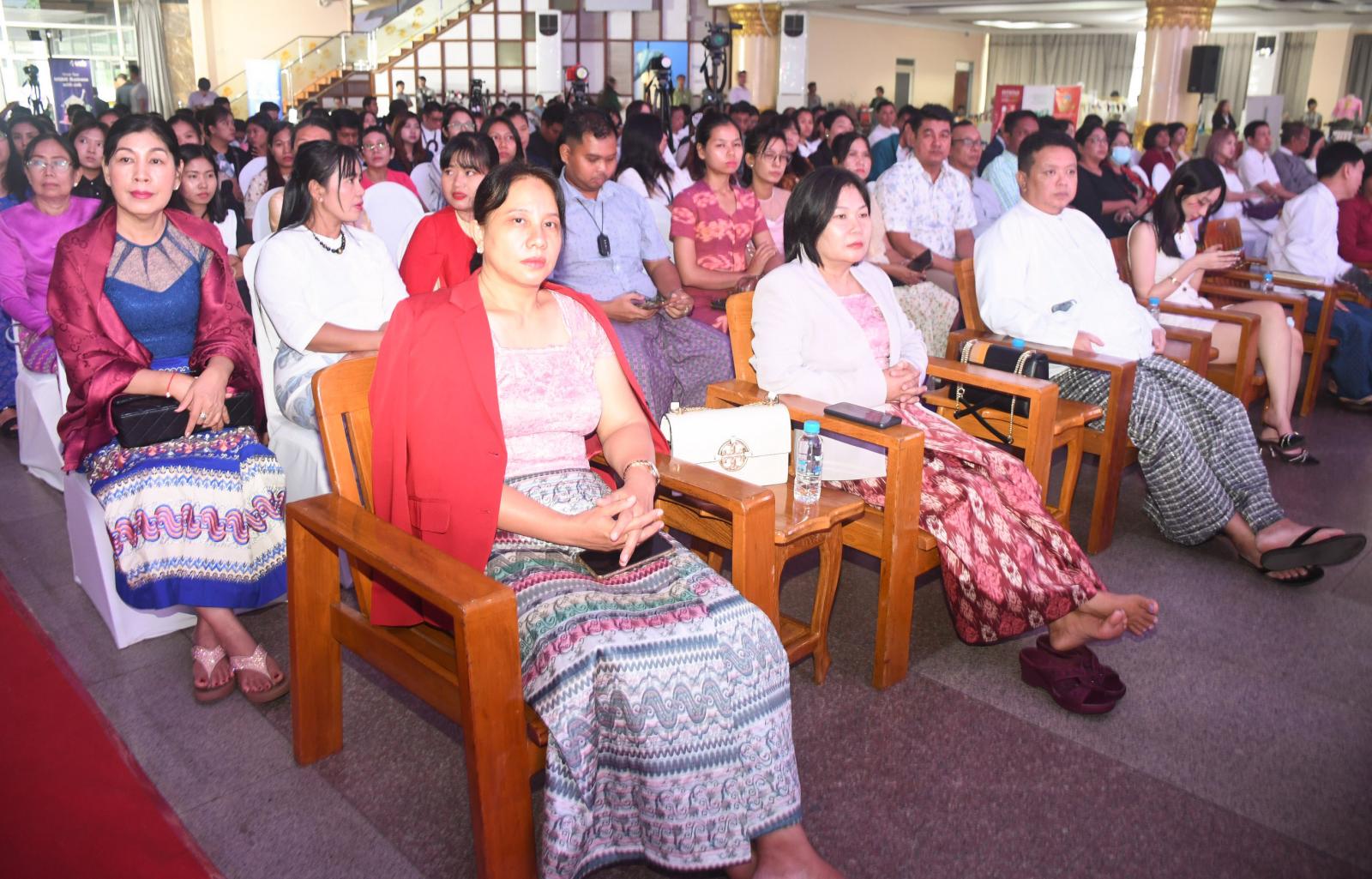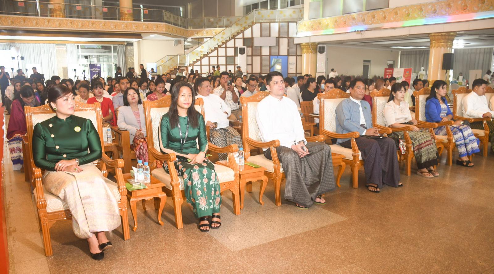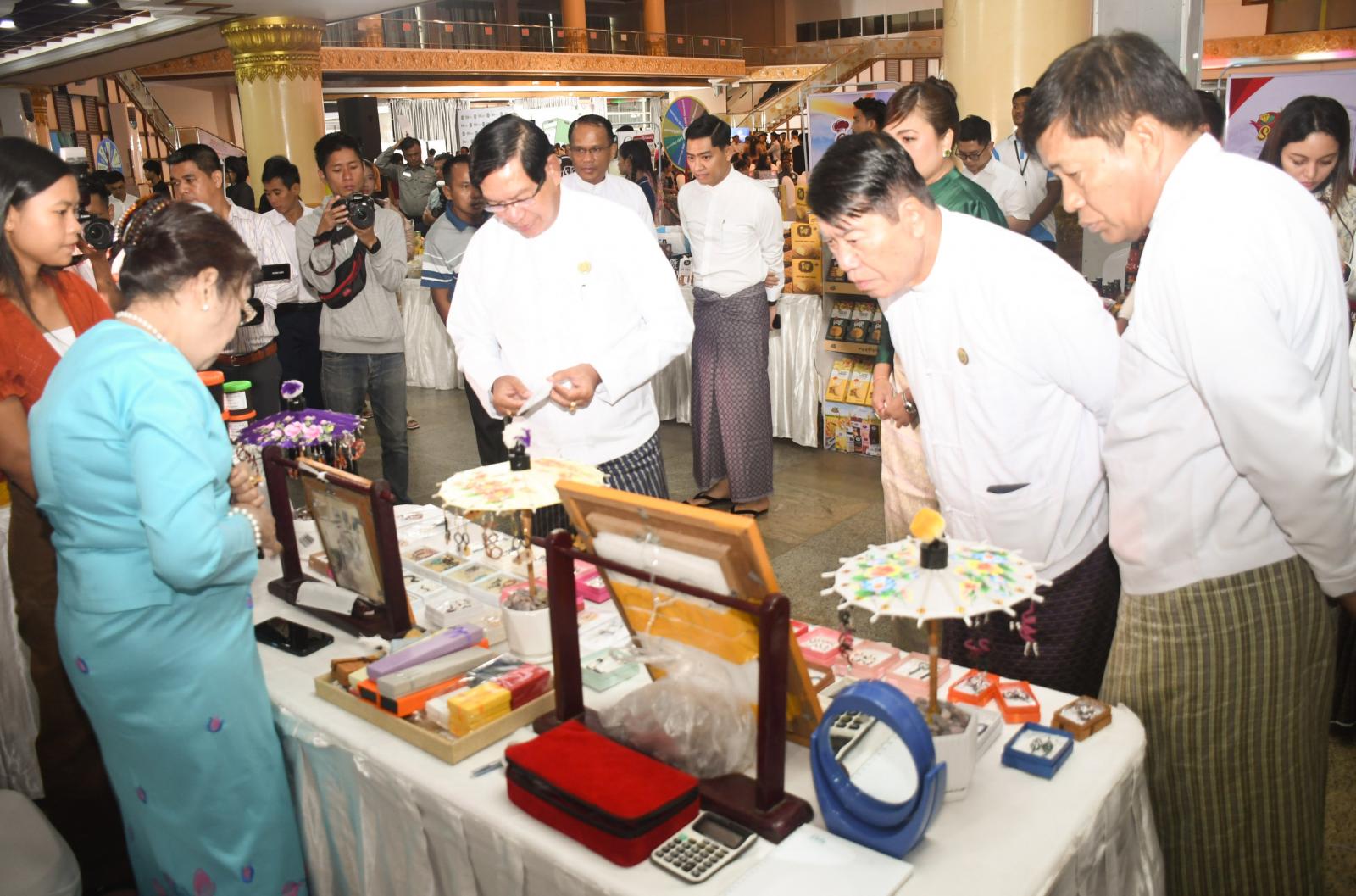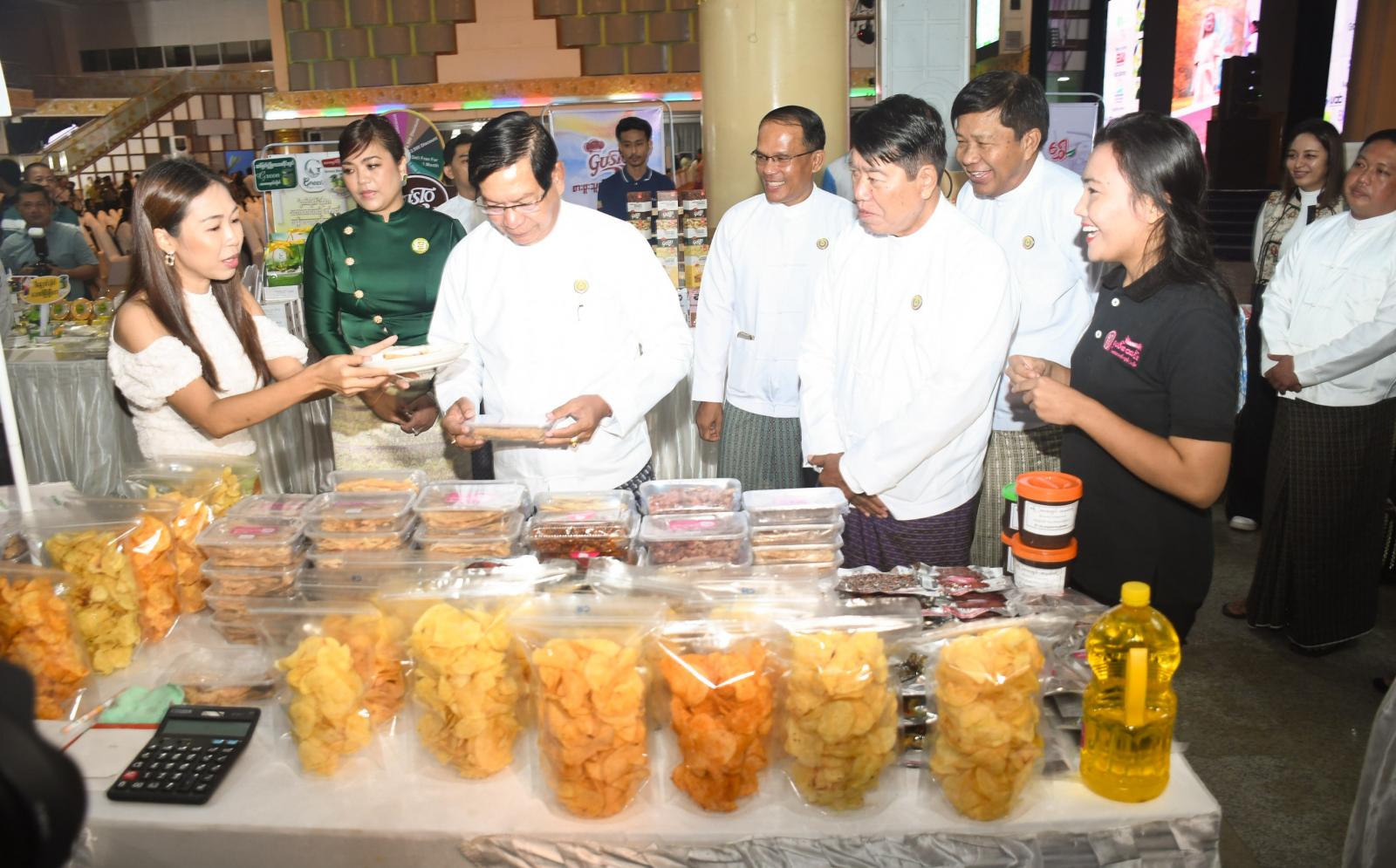 ဆက်လက်၍ MSME by G3G. application နှင့် UAB Bank မှ UAB MMQR နှင့်ပက်သတ်၍ တာဝန်ရှိသူများက ရှင်းလင်းတင်ပြကြပြီး တိုင်းဒေသကြီးဝန်ကြီးချုပ်နှင့် ဧည့်သည်တော်များသည် အမှတ်တရဓါတ်ပုံရိုက်ကြကာ ခင်းကျင်းပြသထားသော ဆိုင်ခန်းများအား လှည့်လည်ကြည့်ရှုအားပေးခဲ့ကြသည်။
