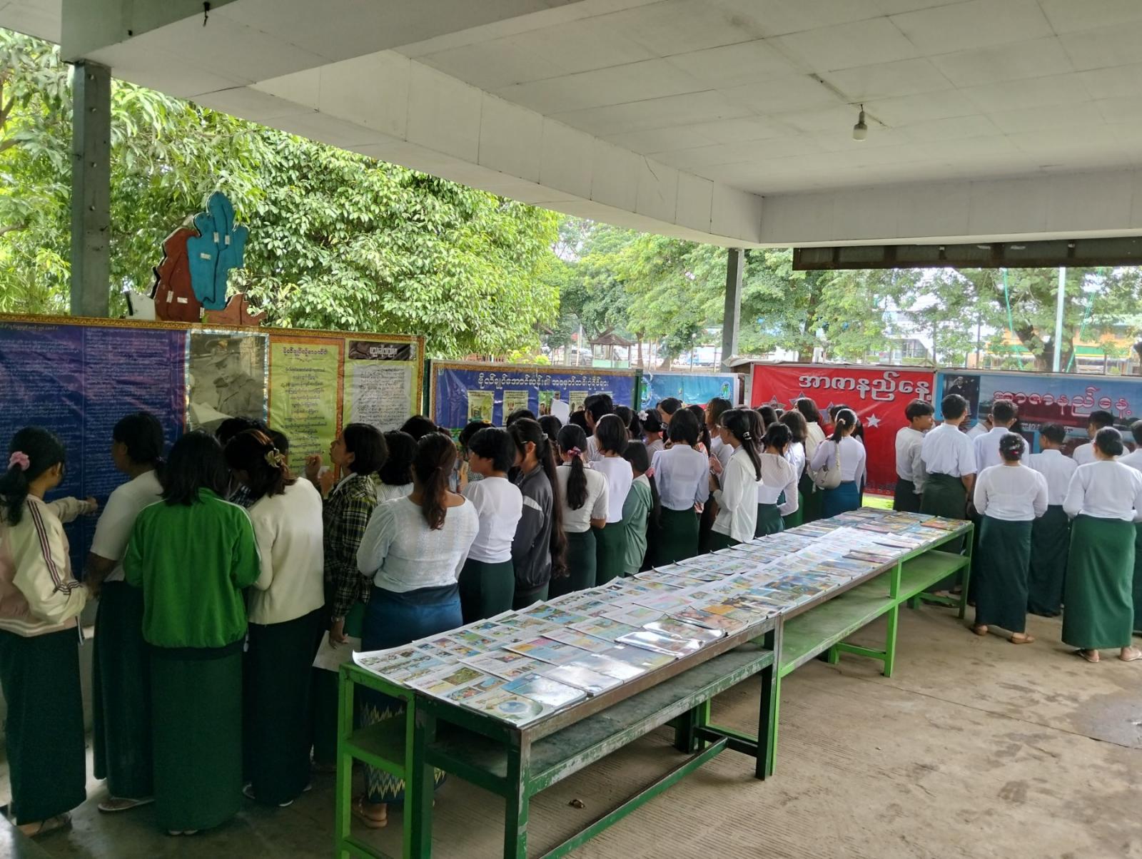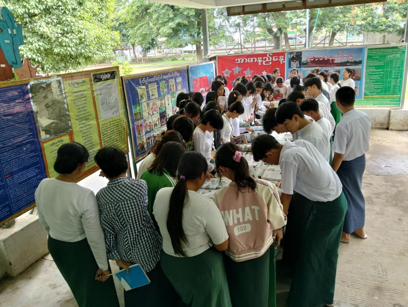 ထို့နောက် ဇမ္ဗူသီရိမြို့နယ် ပြန်ကြားရေးနှင့်ပြည်သူ့ဆက်ဆံရေးဦးစီးဌာနမှ ပြသထားသည့် အာဇာနည်နေ့အထိမ်းအမှတ် အသိပညာပေးနံရံကပ်စာစောင်များနှင့် လူငယ်ရေးရာအသိပညာပေး စာအုပ်၊ စာစောင်များအား ကျောင်းသား၊ ကျောင်းသူများက စိတ်ဝင်တစား ဖတ်ရှုလေ့လာခဲ့ကြကြောင်း သိရှိရသည်။