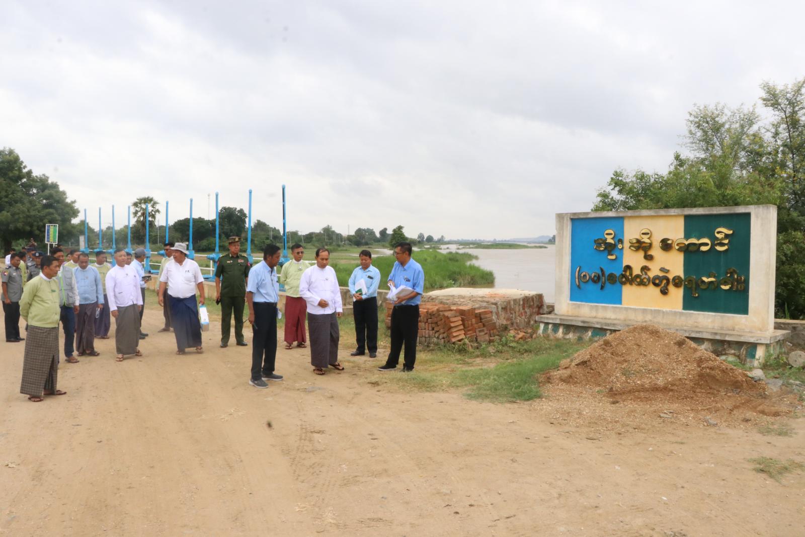 ဆက်လက်၍ တိုင်းဒေသကြီးဝန်ကြီးချုပ်နှင့် တာဝန်ရှိသူများသည် အိုးဘိုတောင် ၁၀ ပေါက်တွဲ ရေတံခါး ရေဝင်ရောက်မှုအခြေအနေနှင့် ကြံ့ခိုင်မှုအခြေအနေများအား ကြည့်ရှုစစ်ဆေး ခဲ့ကြသည်။