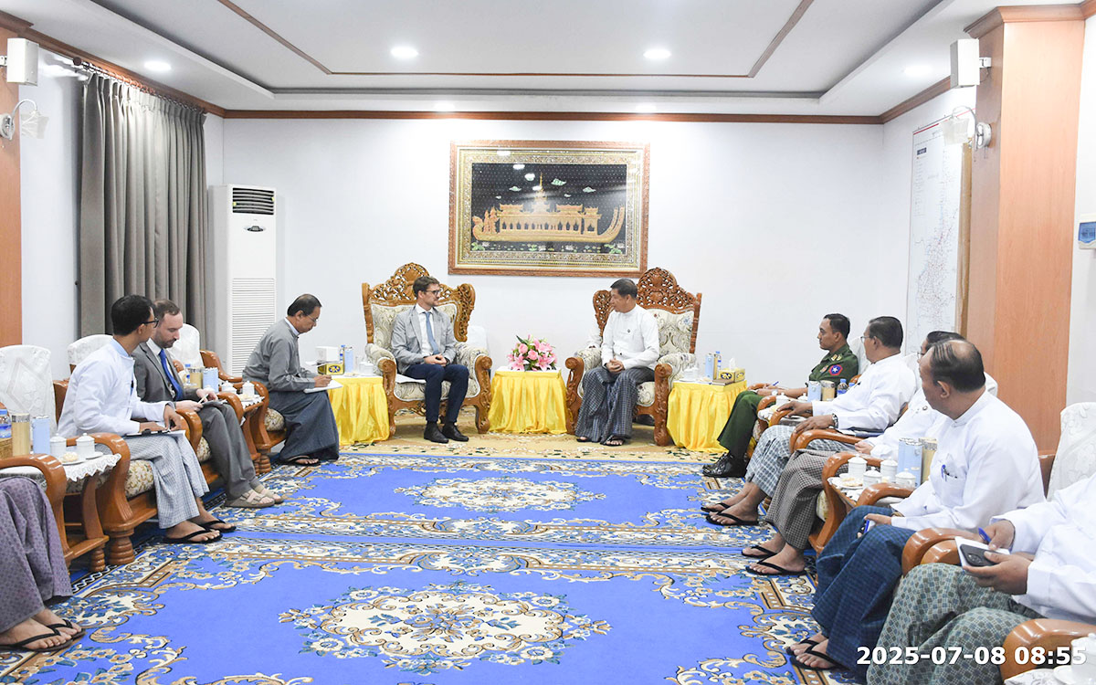 မန္တလေးတိုင်းဒေသကြီးအစိုးရအဖွဲ့ဝန်ကြီးချုပ် ဦးမျိုးအောင်သည် အပြည်ပြည်ဆိုင်ရာ ကြက်ခြေနီကော်မတီ (ICRC) ၏ မြန်မာနိုင်ငံဆိုင်ရာဌာနေ ကိုယ်စားလှယ် Mr.Arnaud de Baecque အား ယမန်နေ့ နံနက်ပိုင်းက မန္တလေးတိုင်းဒေသကြီးအစိုးရအဖွဲ့ရုံးဧည့်ခန်းမဆောင်၌ လက်ခံတွေ့ဆုံခဲ့သည်။