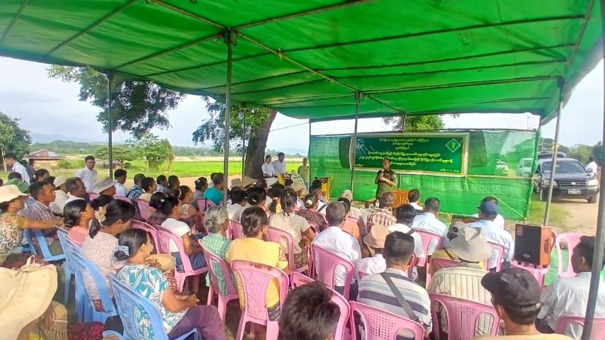 ဦးစွာ နေပြည်တော်ကောင်စီဝင် ဗိုလ်မှူးကြီးရဲမိုးက နိုင်ငံတော်အစိုးရက နိုင်ငံ့စီးပွားမြှင့်တင်ရေးရန်ပုံငွေဖြင့်မျိုး၊ ဓာတ်မြေဩဇာ၊ သွင်းအားစုများ ထောက်ပံ့ပေးလျက်ရှိကြောင်း၊ တောင်သူများအနေဖြင့် အထွက်နှုန်းတိုးရေးအတွက် ကြိုးပမ်းဆောင်ရွက်ကြစေလိုကြောင်း၊ လက်ရှိစိုက်ပျိုးနေသော စပါးမျိုးများအပြင် အထွက်နှုန်းကောင်းမွန်သော မျိုးကောင်းမျိုးသန့် စပါးမျိုးများကို တိုးချဲ့စိုက်ပျိုးကြစေလိုကြောင်း၊ သီးနှံစိုက်ပျိုးမြေများကို ပလပ်မြေမထားပဲ နွေ၊ မိုး၊ ဆောင်း ရာသီပြည့် သီးနှံများစိုက်ပျိုးနိုင်ရန်လိုအပ်ကြောင်း၊ စိုက်ပျိုးသည့်သီးနှံများ ပန်းတိုင်အထွက်နှုန်း ရရှိရေးအတွက် မျိုး၊ မြေ၊ ရေ၊ နည်း နည်းလမ်းများနှင့်အညီ စနစ်တကျစိုက်ပျိုးရန်လိုကြောင်း၊ ရာသီပြည့် သီးနှံစိုက်ပျိုးနိုင်ရေးအတွက် လိုအပ်သောစိုက်ပျိုးရေ၊ မျိုး၊ သွင်းအားစုများအား ဖြည့်ဆည်းဆောင်ရွက်ပေးရန်လိုကြောင်း ပြောကြားသည်။
