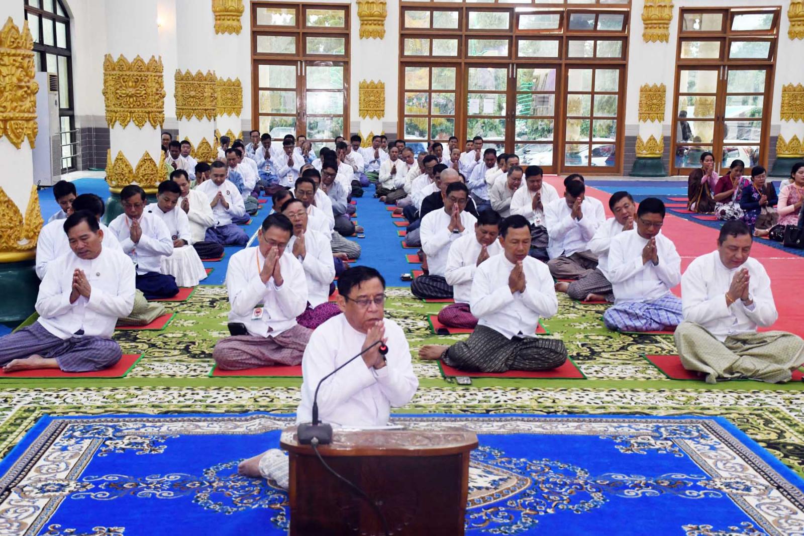 ထို့နောက် တိုင်းဒေသကြီးအစိုးရအဖွဲ့အမှူးပြုသည့် ဖိတ်ကြားထားသောဧည့်သည်တော်များက “နမောတဿ” သုံးကြိမ် ရွတ်ဆိုဘုရားကန်တော့၍ အခမ်းအနားဖွင့်လှစ်ပြီး ထားဝယ်မြို့၊ ဃောသိတာရာမပါဠိတက္ကသိုလ်ကျောင်းတိုက် ပဓာနနာယက နိုင်ငံတော်ဩဝါဒါစရိယ၊ အဂ္ဂမဟာပဏ္ဍိတ ဘဒ္ဒန္တပညာသာမိထံမှ ကိုးပါးသီလ ခံယူဆောက်တည်ကာ ဆရာတော်သံဃာတော် အရှင်သူမြတ်များထံမှ ပရိတ်တရားတော်များ နာယူကြသည်။