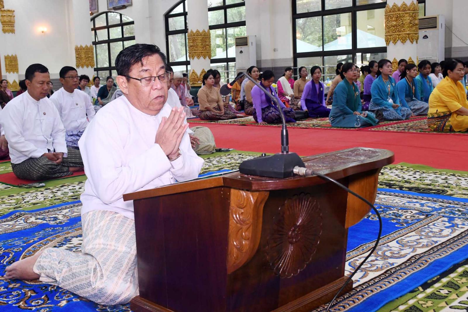 ရှေးဦးစွာတိုင်း ဒေသကြီးဝန်ကြီးချုပ် ဦးမြတ်ကိုက သာသနာ့ဗိမာန်တော်ကြီးတွင် ကိန်းဝပ်စံပယ်တော်မူသော ဗုဒ္ဓရုပ်ပွားတော်မြတ်ကြီးအား ရွှေကြာသင်္ကန်းနှင့် ပန်း၊ ရေချမ်း၊ ဆီးမီး၊ ဆွမ်း၊ သစ်သီးများ ဆက်ကပ်လှူဒါန်းပူဇော်သည်။