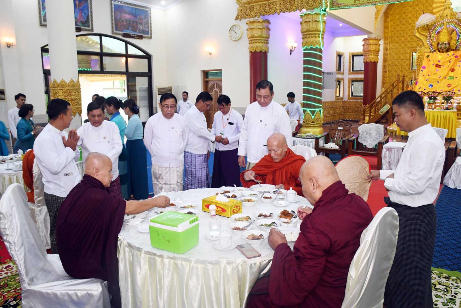 ယင်းနောက် တိုင်းဒေသကြီးအစိုးရအဖွဲ့က သံဃာတော်အရှင်သူမြတ်များ နေ့ဆွမ်းဆက်ကပ်လှူဒါန်းကာ ပြည်သူများအား အာဟာရဒါနကျွေးမွေးကြောင်း သတင်းရရှိသည်။