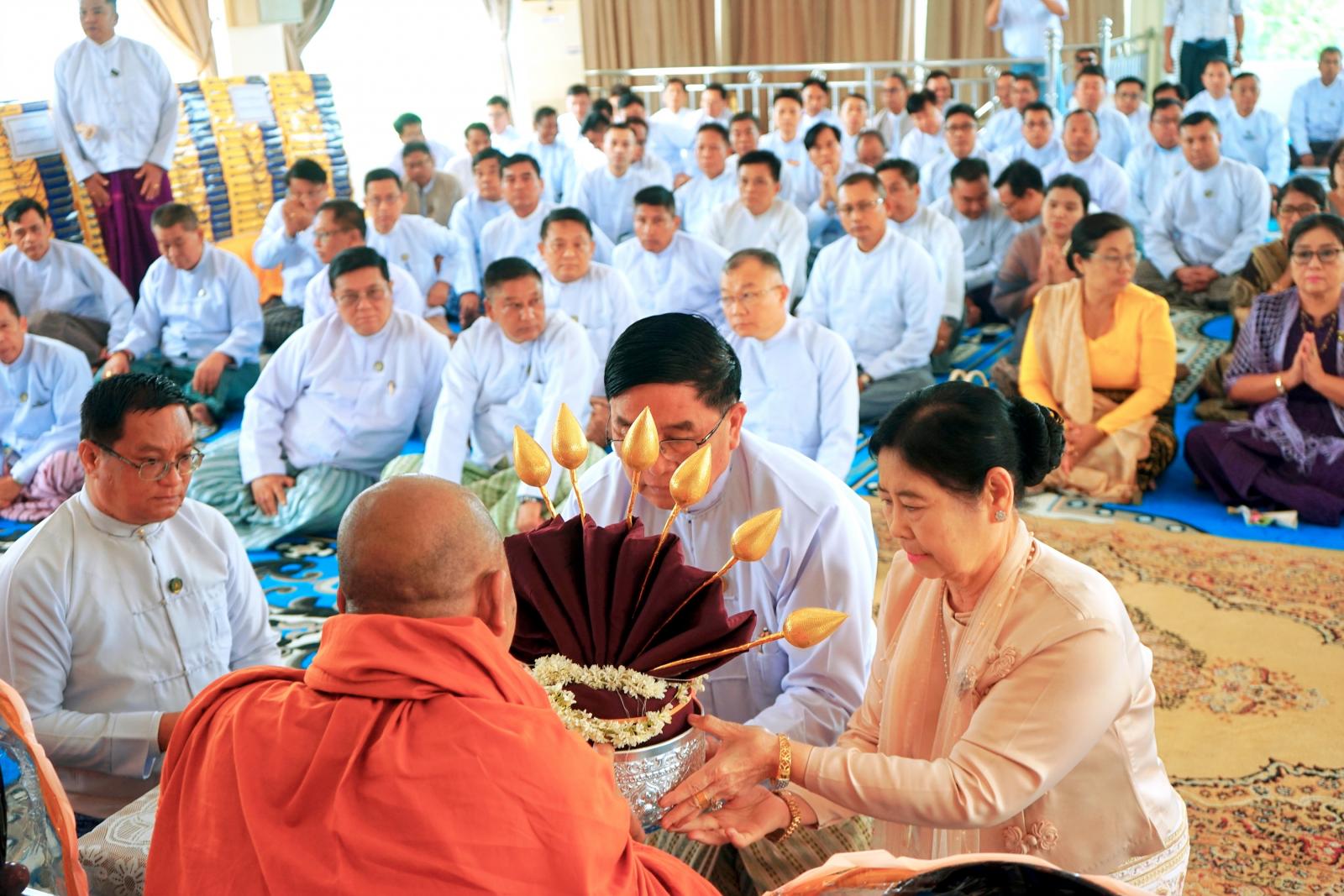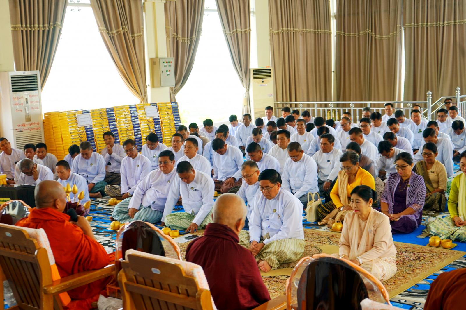ရှေးဦးစွာ အခမ်းအနားကို နမောတဿသုံးကြိမ်ရွတ်ဆို ဘုရားကန်တော့ ဖွင့်လှစ်ခဲ့ပြီး၊ မကွေးမြို့ သံဃာရာမကျောင်းတိုက် ပဓာနနာယက အဘိဓဇမဟာရဌဂုရု ဘဒ္ဒန္တစိန္တာသာရ ဆရာတော်ကြီးထံမှ ငါးပါးသီလခံယူဆောက်တည်ကာ သံဃာတော်အရှင်သူမြတ်များက ချီးမြှင့်တော်မူသော ပရိတ်တရားတော်များကို တိုင်းဒေသကြီးအစိုးရအဖွဲ့ဝန်ကြီးချုပ်နှင့် ဧည့်ပရိတ်သတ်အပေါင်းတို့က နာယူကြည်ညိုခဲ့ကြသည်။