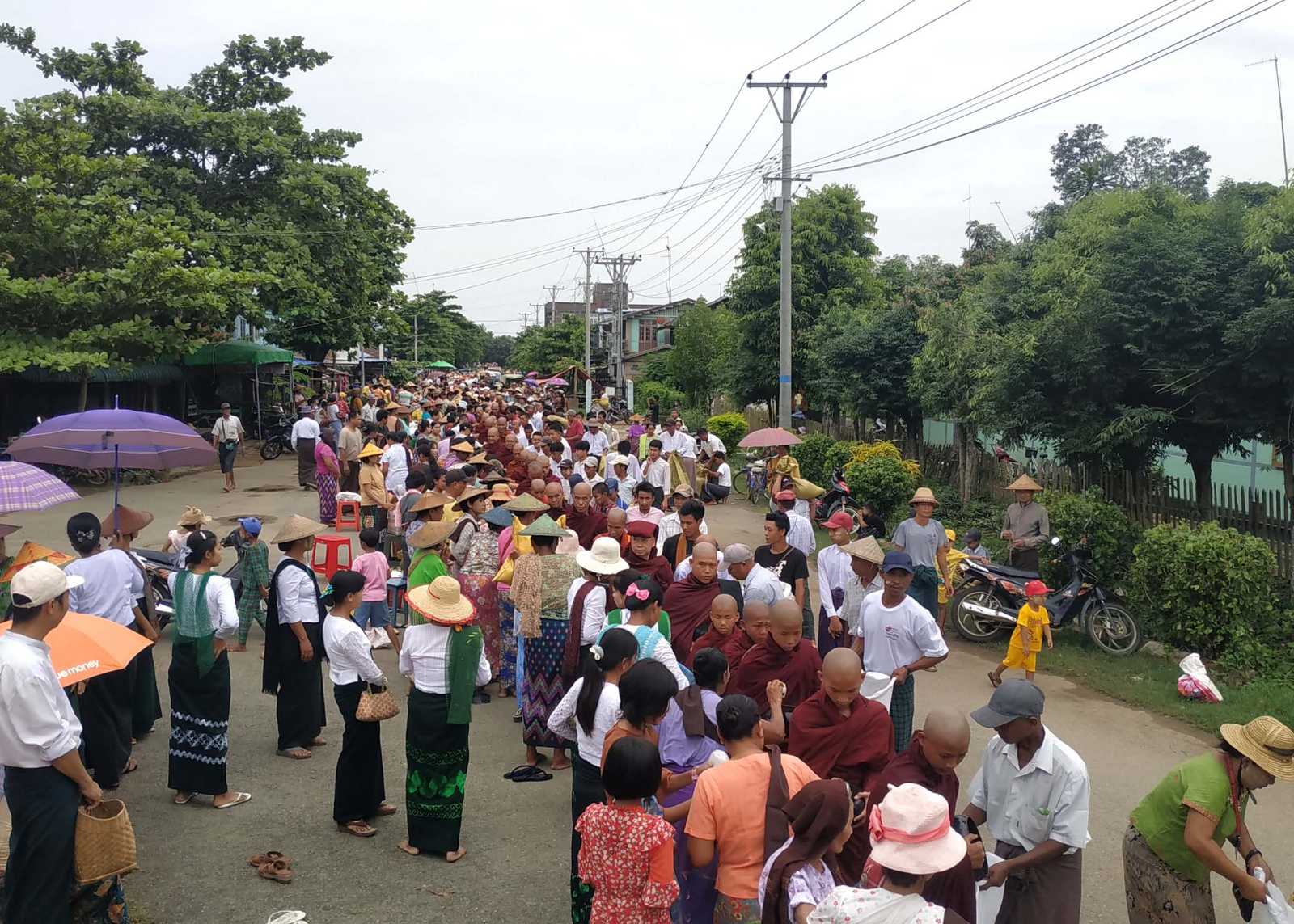 အဆိုပါမြို့လုံးကျွတ် ဆွမ်းဆန်စိမ်းလောင်းလှူပူဇော်ရာတွင် မြို့ပေါ်ကျောင်းတိုက်အသီးသီးရှိ သံဃာ တော်များ၊ သီလရှင်များ စုစုပေါင်း(၁၅၉)ပါးတို့က မဟာမှန်ကျောင်း ကျောင်းတိုက်ရှေ့စုရပ်မှ မြို့နယ်ပြည်သူ့ဆေးရုံလမ်း၊ ဟော်တော်ဦးဘုရားလမ်း၊ မြို့မဈေးတောင်ဘက်လမ်းနှင့် အနောက် ဘက်လမ်းတို့ကို လှည့်လည်၍ ကြွရောက်တော်မူခဲ့ရာ အမှတ်(၁၂၀၊၁၁၁)ခြေမြန်တပ်ရင်းတို့မှ တပ်မတော်သားမိသားစုများ၊ ကောလင်းခရိုင်စီမံအုပ်ချုပ်ရေးအဖွဲ့၊ အဖွဲ့ဝင် (၁)၊ ဒုတိယဗိုလ်မှူးကြီး သိန်းဇော်လင်း၊ ခရိုင်ရဲတပ်ဖွဲ့မှူး၊ ဒုတိယရဲမှူးကြီး အောင်မျိုးသူနှင့် ခရိုင်အဆင့်ဌာနဆိုင်ရာ အကြီးအကဲများ၊ မြို့နယ်စီမံအုပ်ချုပ်ရေးအဖွဲ့ဥက္ကဋ္ဌ ဦးစည်သူကျော်နှင့် ဌာနဆိုင်ရာအကြီးအကဲများ၊ ဝန်ထမ်းများ၊ ဒေသခံပြည်သူအလှူရှင်များတို့က ဆွမ်းဆန်စိမ်းနှင့်လှူဖွယ်ဝတ္ထုပစ္စည်းအစုစုတို့ကို လောင်းလှူခဲ့ကြောင်း သိရသည်။