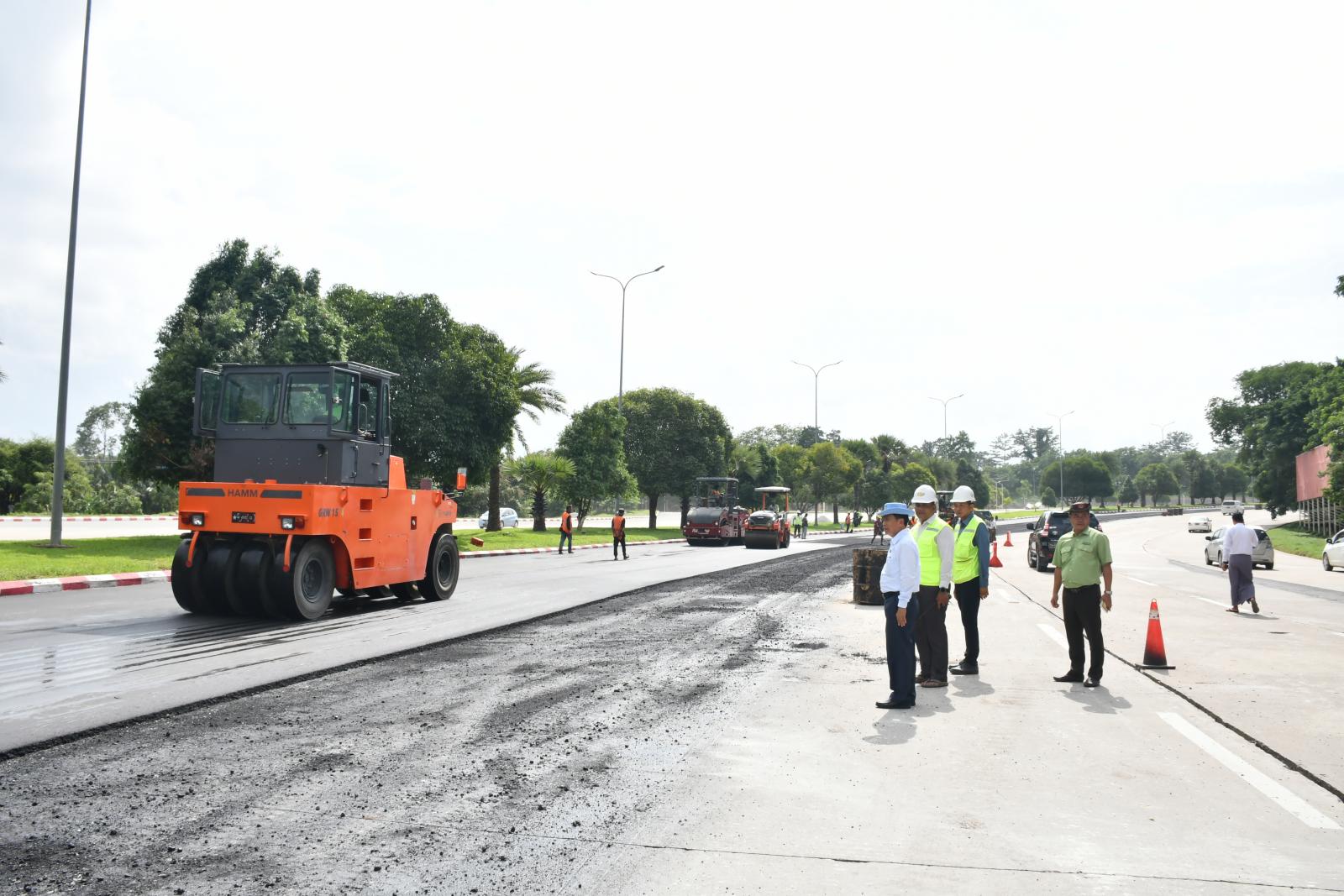 ဆက်လက်၍ နေပြည်တော်ကောင်စီဥက္ကဋ္ဌ ဦးသန်းထွန်းဦးသည် ရာဇဌာနီလမ်းမကြီး၊ ရာဇသင်္ဂဟလမ်းမကြီးနှင့် ဇေယျဌာနီလမ်းမကြီးများ သို့သွားရောက်ပြီး ငလျင်ဘေးကြောင့် ထိခိုက်ပျက်စီးခဲ့သည့် လမ်းပိုင်းများအားပြန်လည်ပြုပြင်နေမှုနှင့် နိုင်လွန်ကတ္တရာလမ်း(AC)ခင်းကျင်းနေမှု အခြေအနေများကိုလှည့်လည်ကြည့်ရှုစစ်ဆေးပြီး တာဝန်ရှိသူများ၏တင်ပြချက်များအပေါ် ရာသီဥတုကောင်းမွန်ချိန်တွင် လူအင်အား၊ စက်ယန္တယားအင်အားတိုးမြှင့်ပြီး အင်တိုက်အားတိုက်ဆောင်ရွက်ရေး၊ အပိုင်းလိုက်အမြန်ပြီးစီးအောင်ဆောင်ရွက်ရေး၊ ရေရှည်ခိုင်ခံမှုရှိအောင် စံချိန်စံညွှန်းနှင့်အညီ ဆောင်ရွက်ရေးတို့ကို မှာကြားခဲ့သည်။