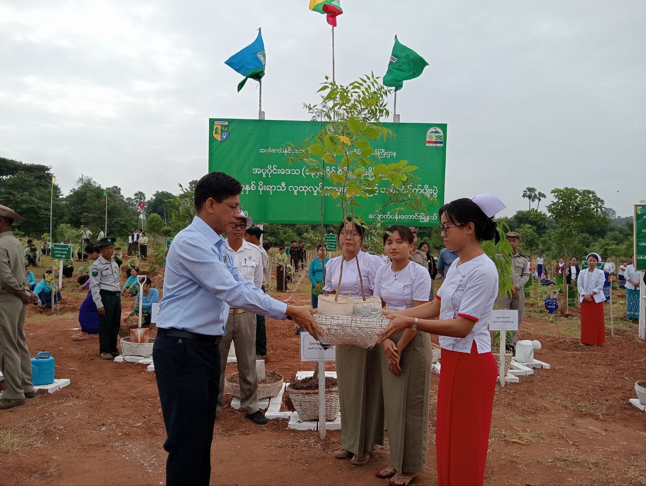 အဆိုပါ သစ်ပင်စိုက်ပျိုးပွဲတွင် အမှတ်(၁)သတ္တုတွင်းလုပ်ငန်းဦးဆောင်ညွှန်ကြားရေးမှူး ဒေါက်တာ အောင်သူရိန်ဝင်းက သစ်ပင်စိုက်ပွဲတော်သို့ တက်ရောက်လာသူများကို ပျိုးပင်များလွှဲပြောင်းပေးအပ်ပြီး မြို့နယ်စီမံအုပ်ချုပ်ရေးအဖွဲ့ဥက္ကဋ္ဌနှင့် ဌာနဆိုင်ရာတာဝန်ရှိသူများ၊ အမျိုးသမီးရေးရာ အဖွဲ့ဝင်များ၊ ဝန်ထမ်းများ၊ ကျောင်းသား၊ ကျောင်းသူများ စုစုပေါင်းအင်အား ၃၀၈ ဦးတို့က တမာ(၃၀၀)၊ ဖျောက်ဆိပ်(၃၀၀) ပျိုးပင်စုစုပေါင်း(၆၀၀)ကို စိုက်ပျိုး ပေးခဲ့ကြသည်။