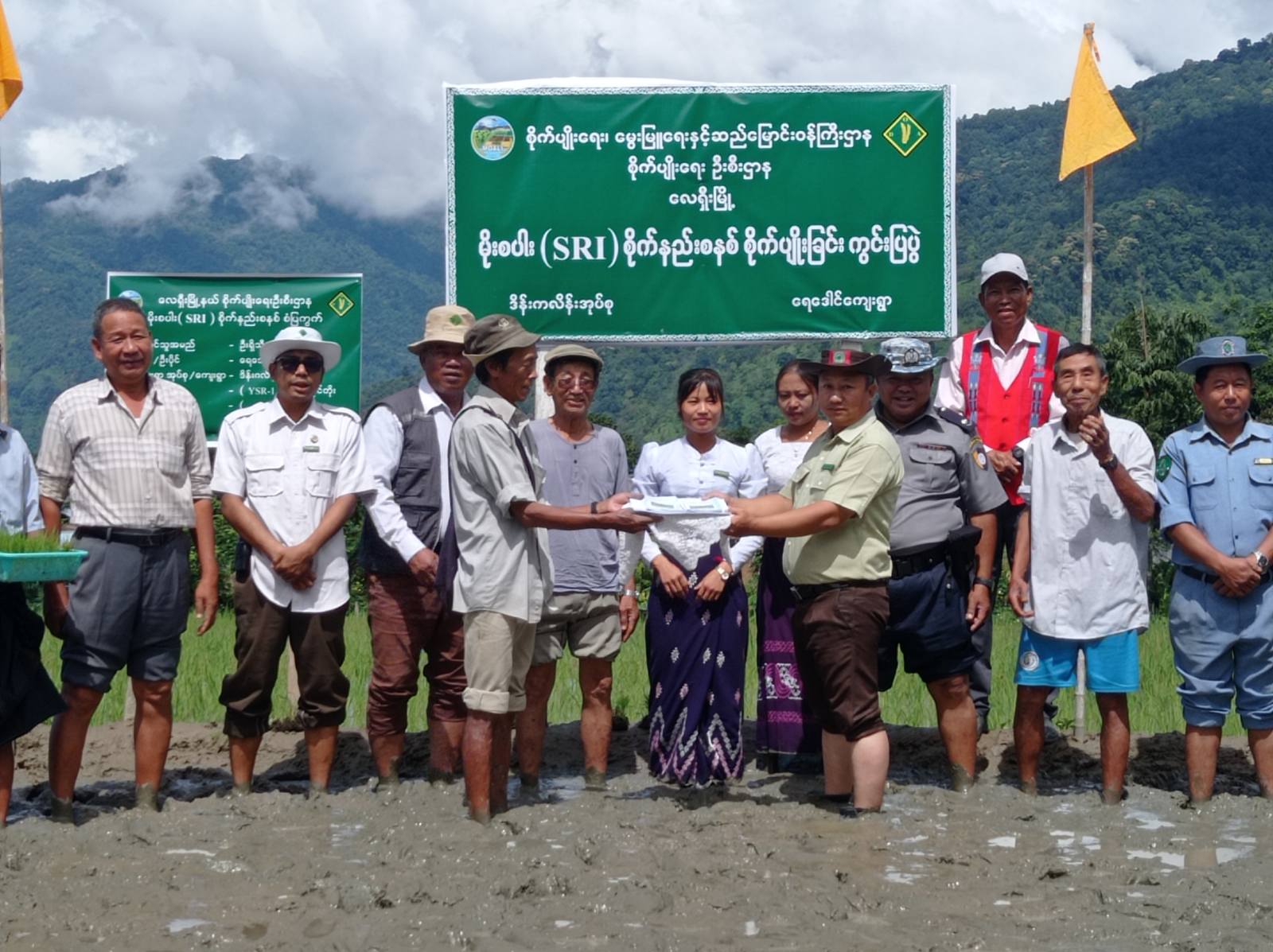 ထို့နောက် မိုးစပါး SRI စိုက်နည်းစနစ်စိုက်ပျိုးခြင်းကို လက်တွေ့ကွင်းသရုပ်ပြဆောင်ရွက်ခဲ့ပြီး တောင်သူအသိပညာပေး လက်ကမ်းစာစောင်များ၊ ဟင်းသီးဟင်းရွက်မျိုးစေ့ထုပ်များကို တောင်သူများအား ပေးအပ်ခဲ့သည်။ အဆိုပါကွင်းသရုပ်ပြပွဲတွင် မိုးစပါး (YSR-1 အောင်နိုင်တိုး) စိုက်ဧက(၁) ဧက စိုက်ပျိုးခဲ့ကြောင်း သတင်းရရှိသည်။